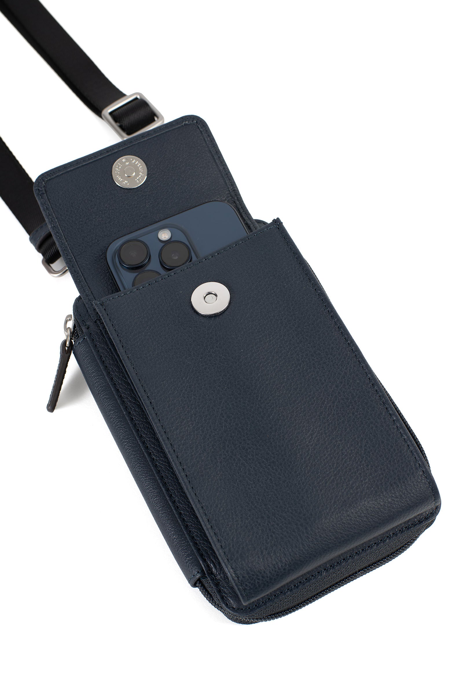 This phone pouch with wallet combines elegance and functionality. Made from grained cowhide leather , it offers a pleasant texture to the touch and increased durability. Its timeless design, characterized by tone-on-tone stitching, brings a touch of sophistication to all your outfits.