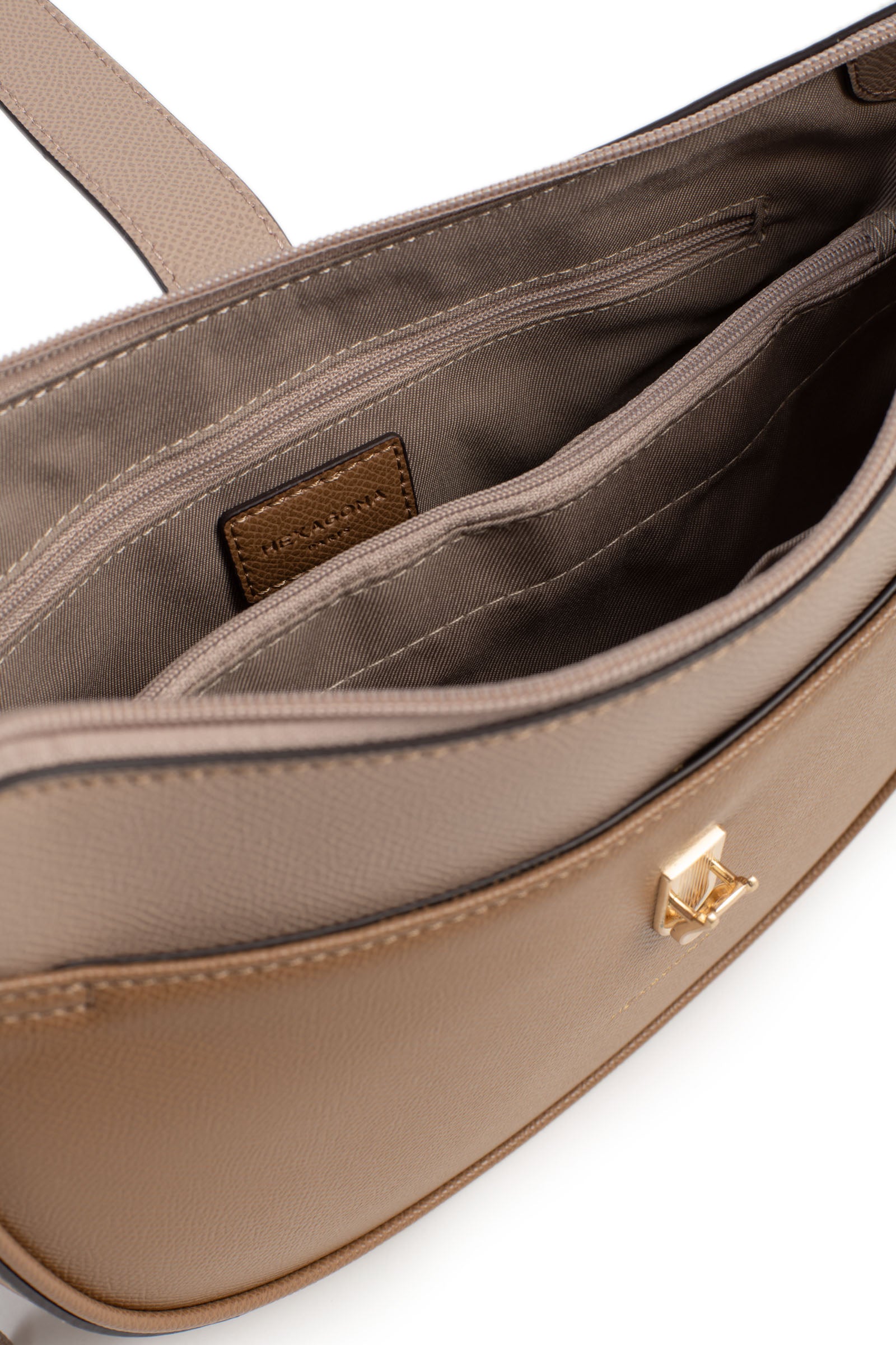 Be charmed by the Merline collection from the HEXAGONA brand, which combines elegance and femininity thanks to its structured shapes, its multiple colors and its golden details. This shoulder bag with a handle stands out with its chic and modern design, perfect for everyday use or for special occasions.