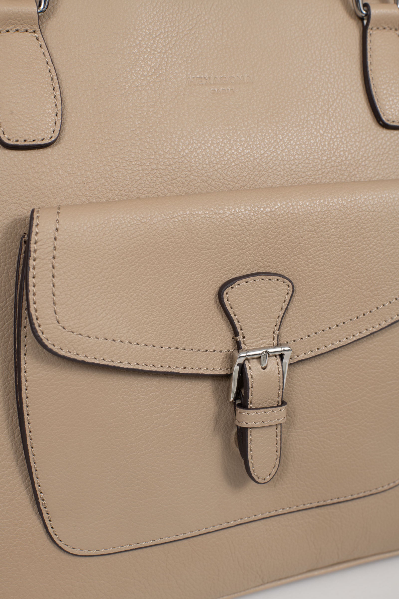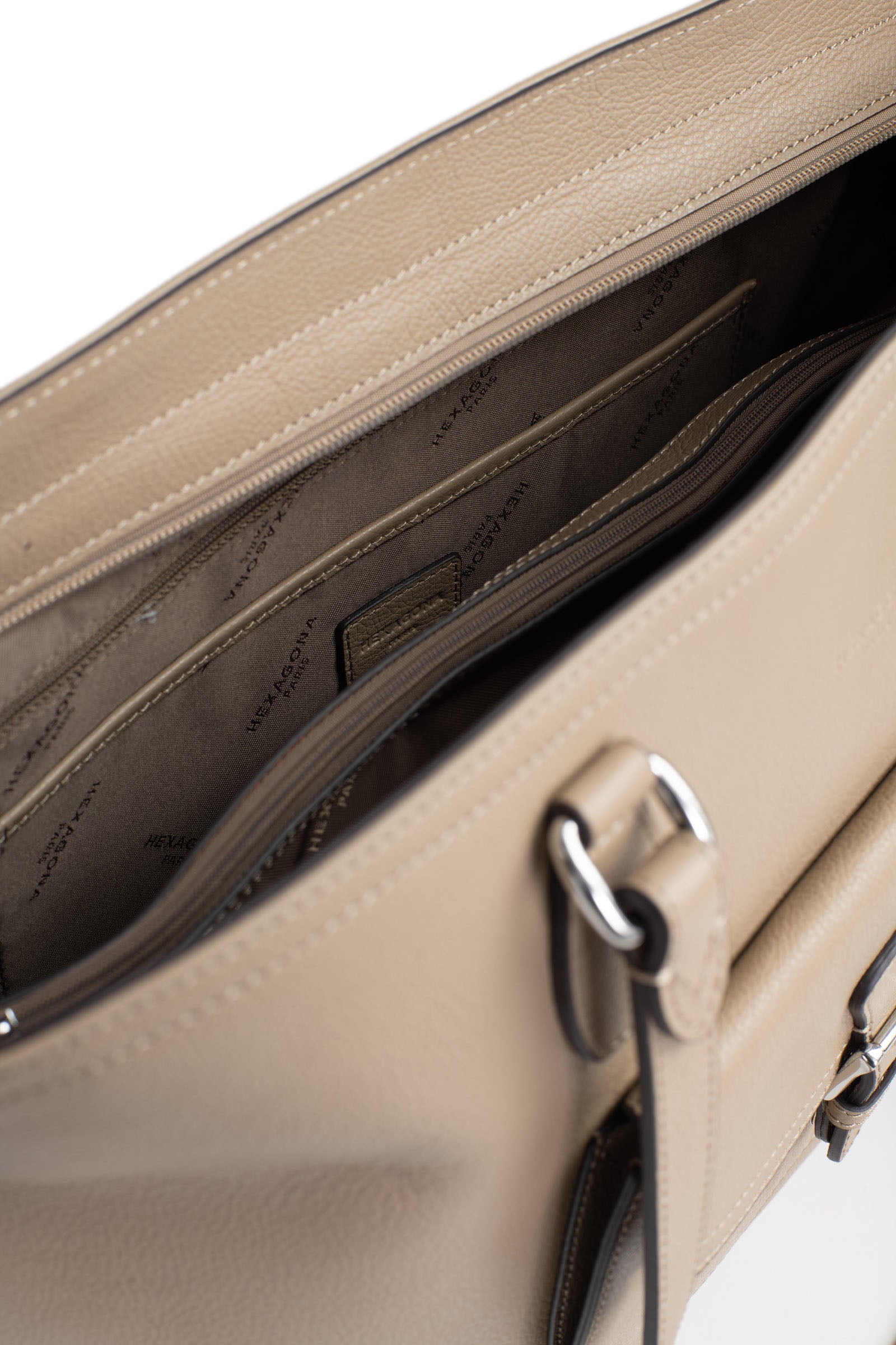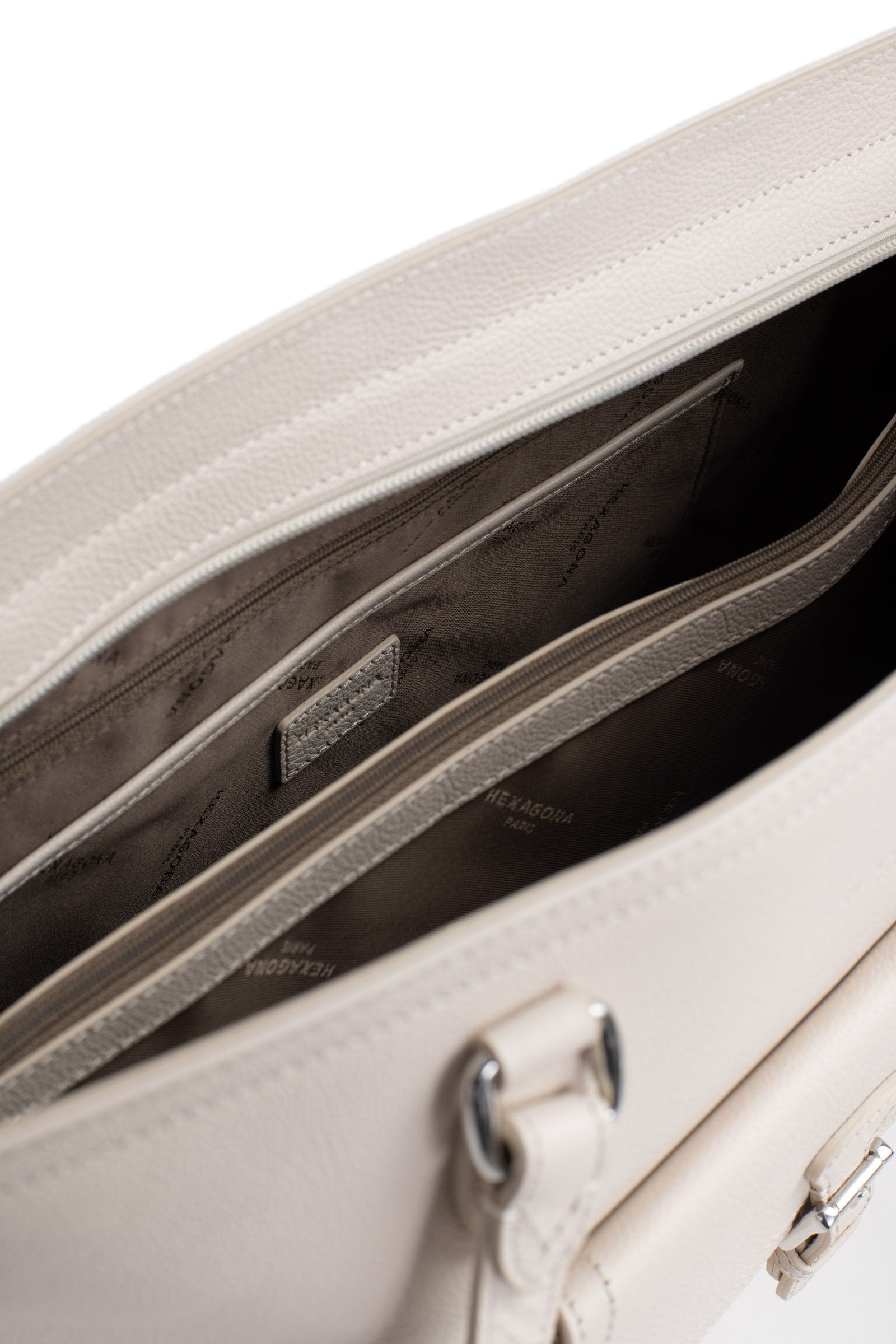 Torba typu cabas noszona na ramieniu marki Hexagona to niezbędny dodatek na ten sezon jesień-zima. Wykonana z ziarnistej skóry bydlęcej, łączy elegancję z praktycznością dzięki idealnym wymiarom do transportu dokumentów w formacie A4.