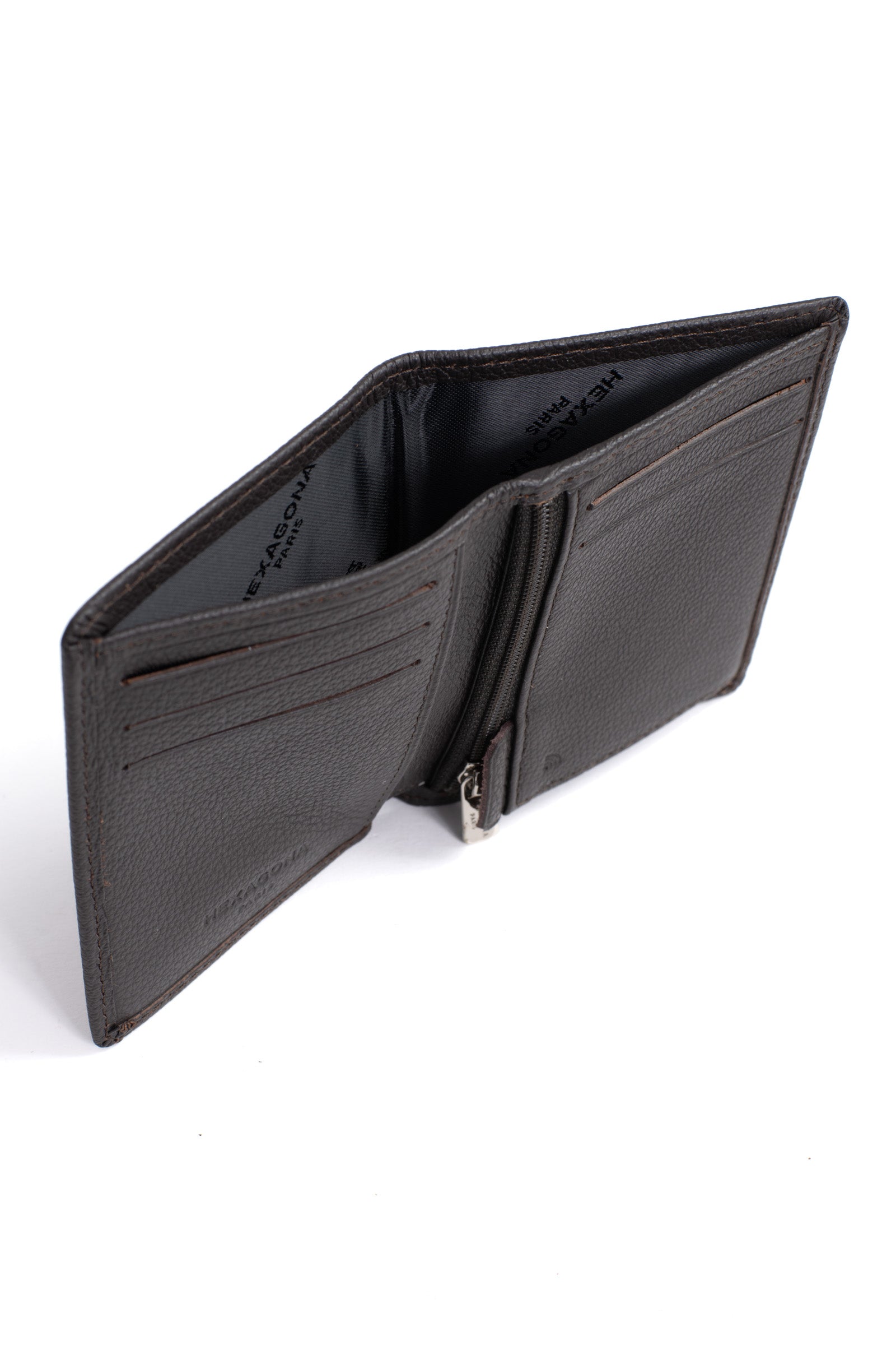 Wewnętrzny : Wnętrze: 1 przegroda. 1 zamykana kieszeń na monety. 2 kieszenie płaskie. 5 miejsc na karty. 1 kieszeń na banknoty.