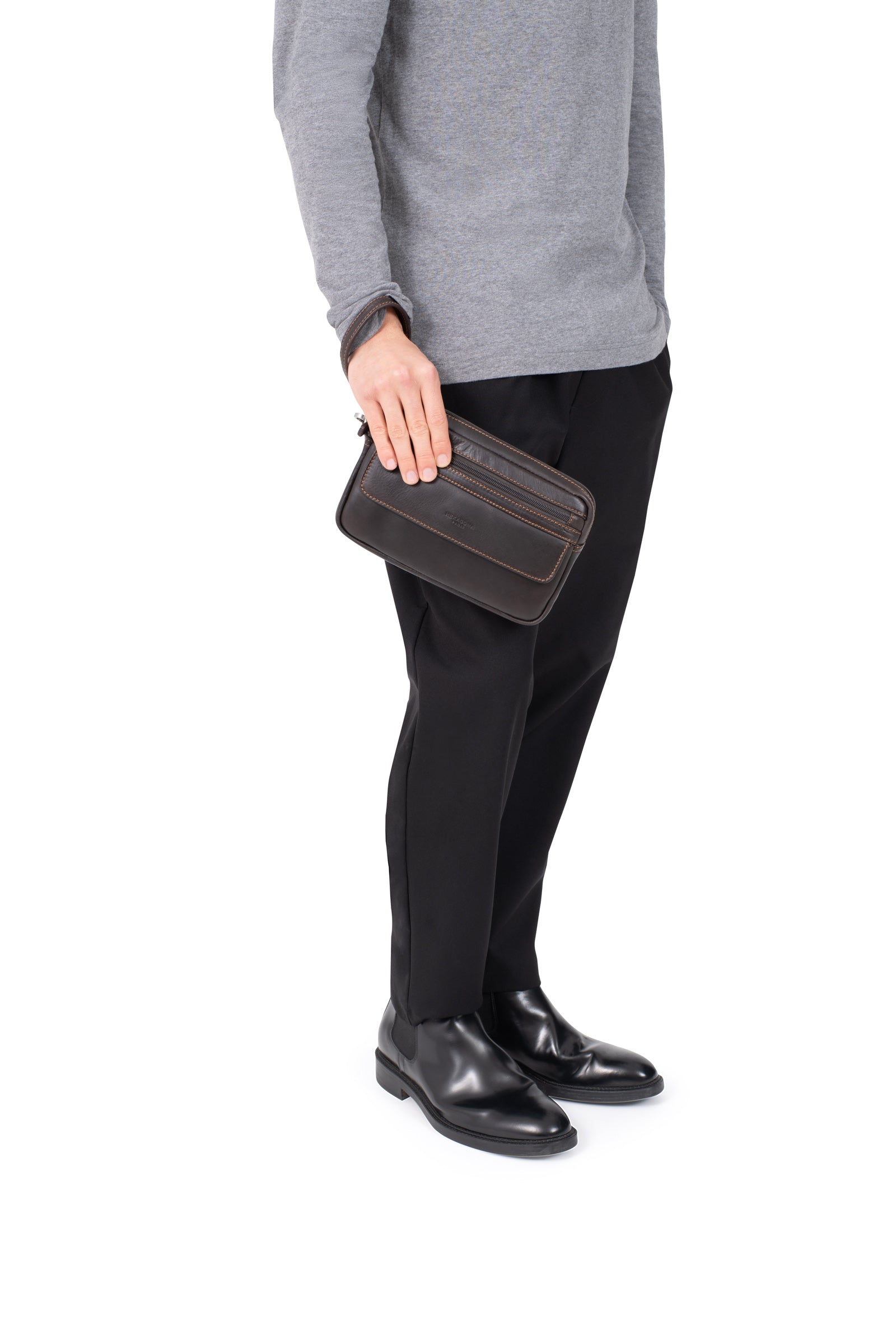 Conçue pour allier style et praticité, cette pochette est équipée de plusieurs poches pour une organisation optimale de vos effets personnels. Avec sa dragonne amovible, elle offre un transport facile tout en restant chic. Le cuir véritable garantit non seulement la durabilité, mais se patine également avec le temps, révélant ainsi toute sa beauté.