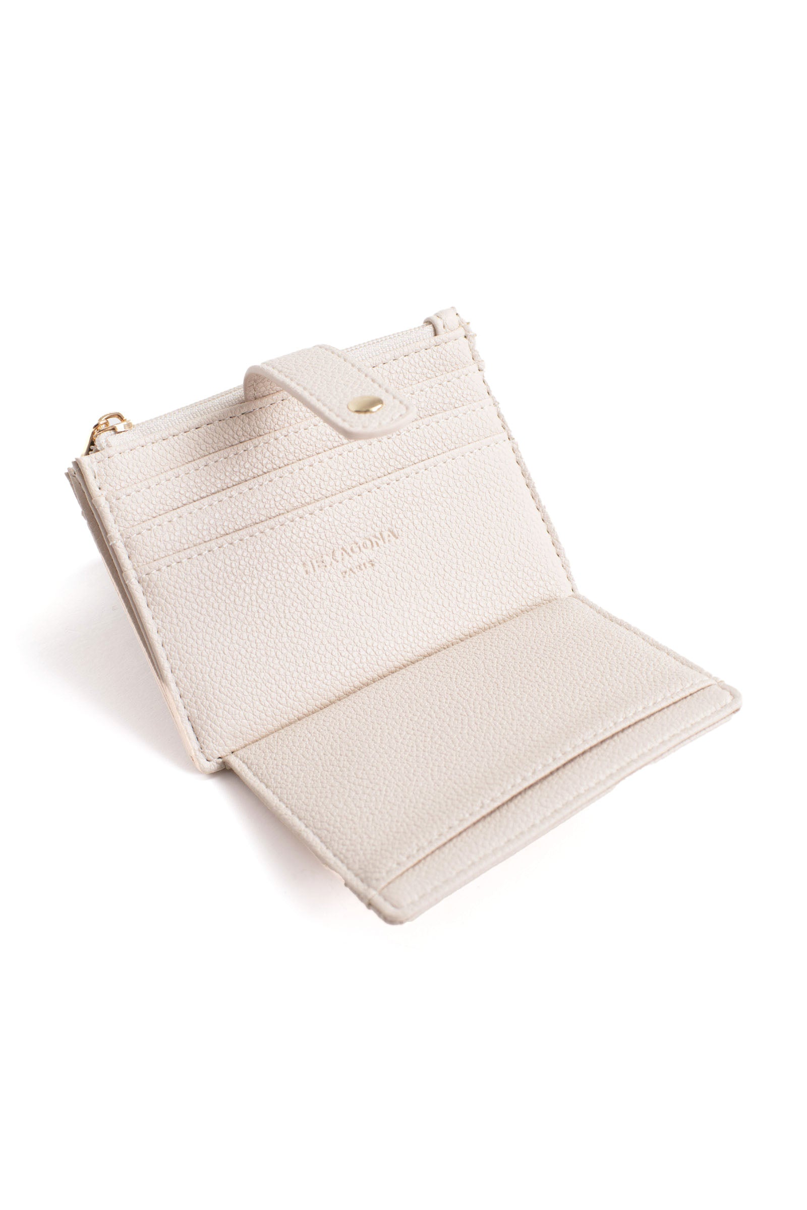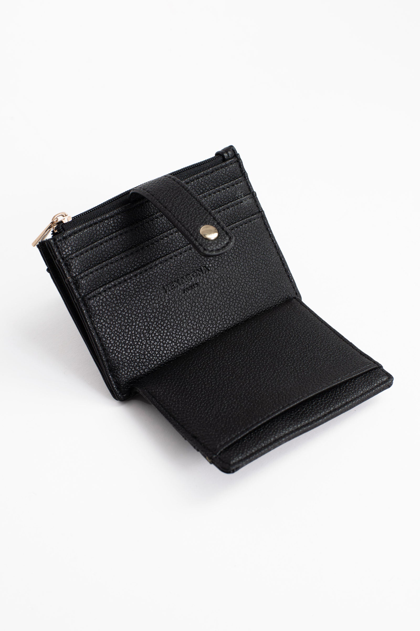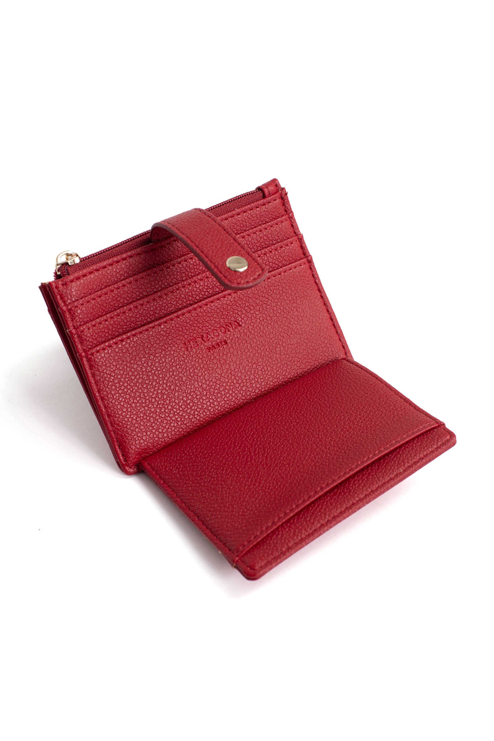 - Intérieur : 1 volet. 1 porte-monnaie zippé. 8 emplacements carte (dont 1 à vue transparente).
