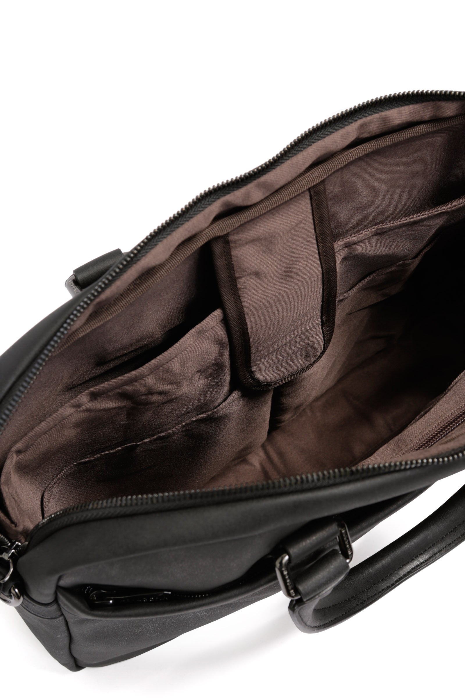 Intérieur : 1 compartiment principal avec 1 compartiment ordinateur rembourré. 1 poche plate zippée. 3 poches plates.