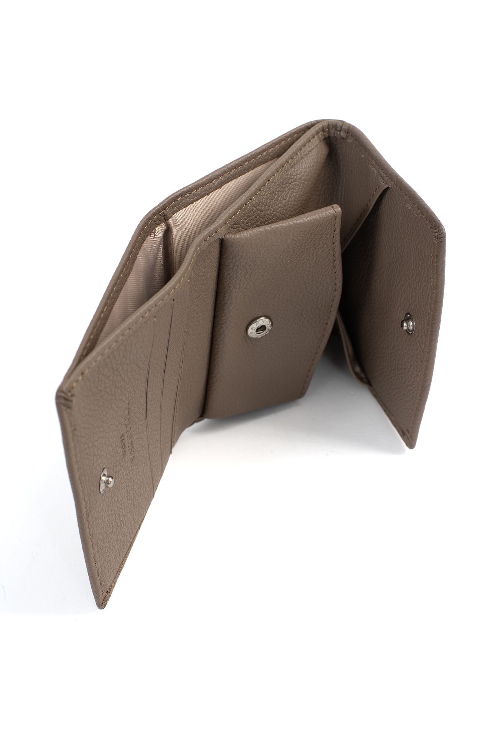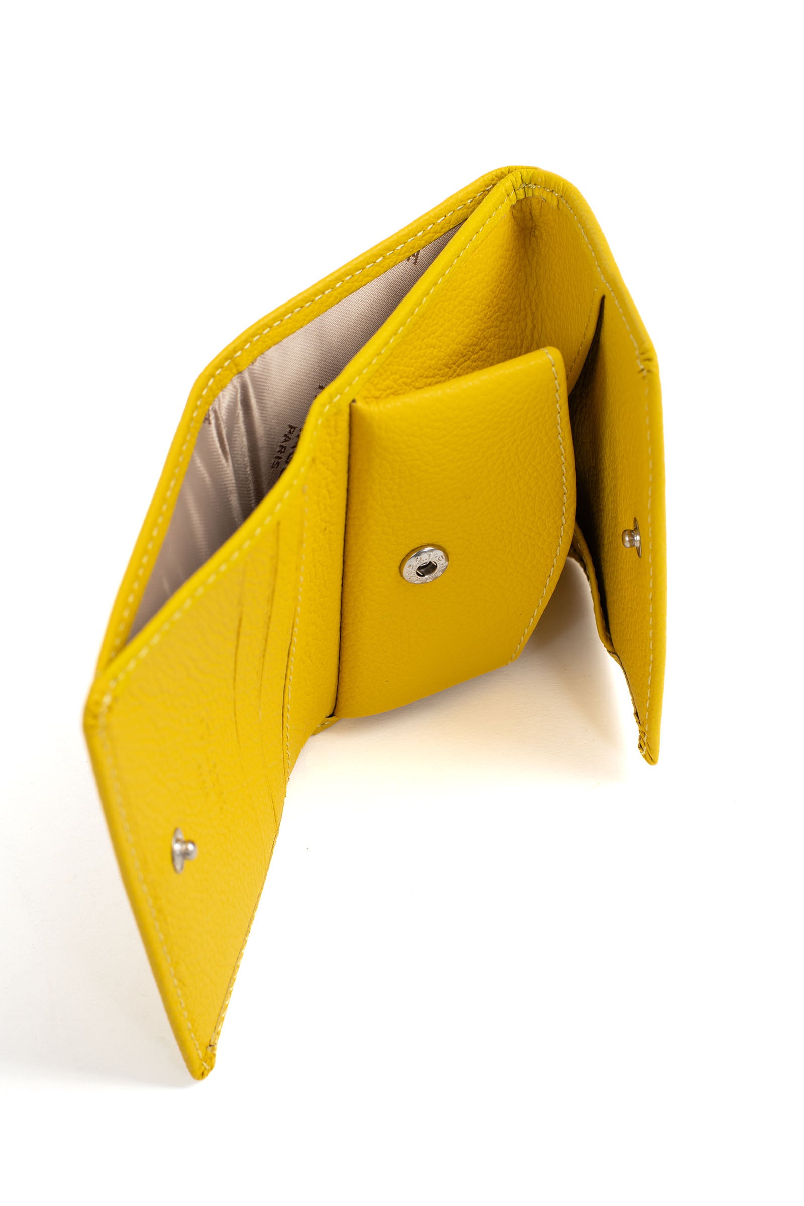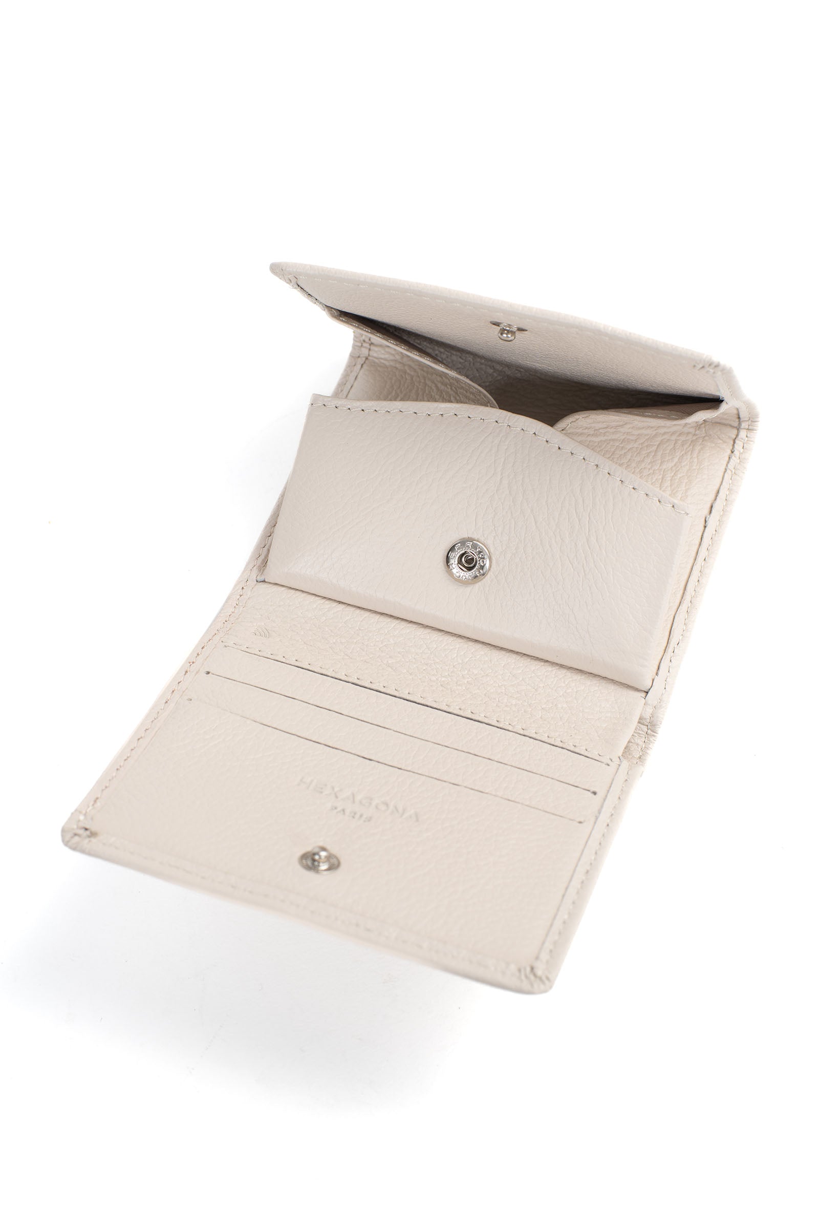 Intérieur : 1 volet. 1 porte-monnaie à pression. 3 emplacements carte. 1 poche billets.