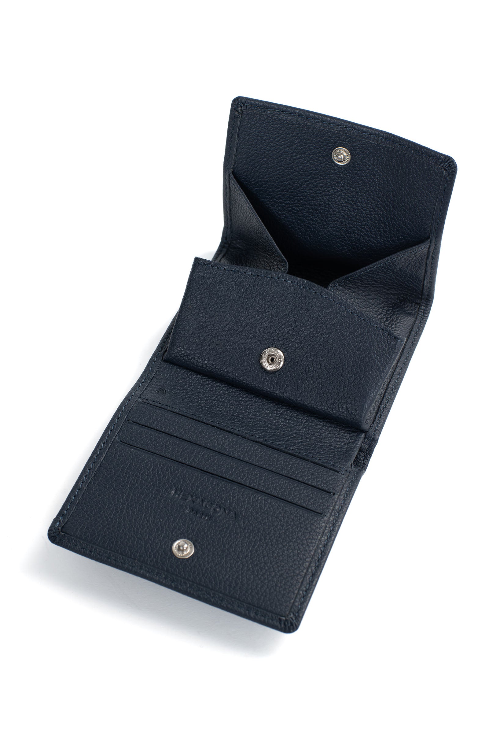 - Intérieur : 1 volet. 1 porte-monnaie à pression. 3 emplacements carte. 1 poche billets.