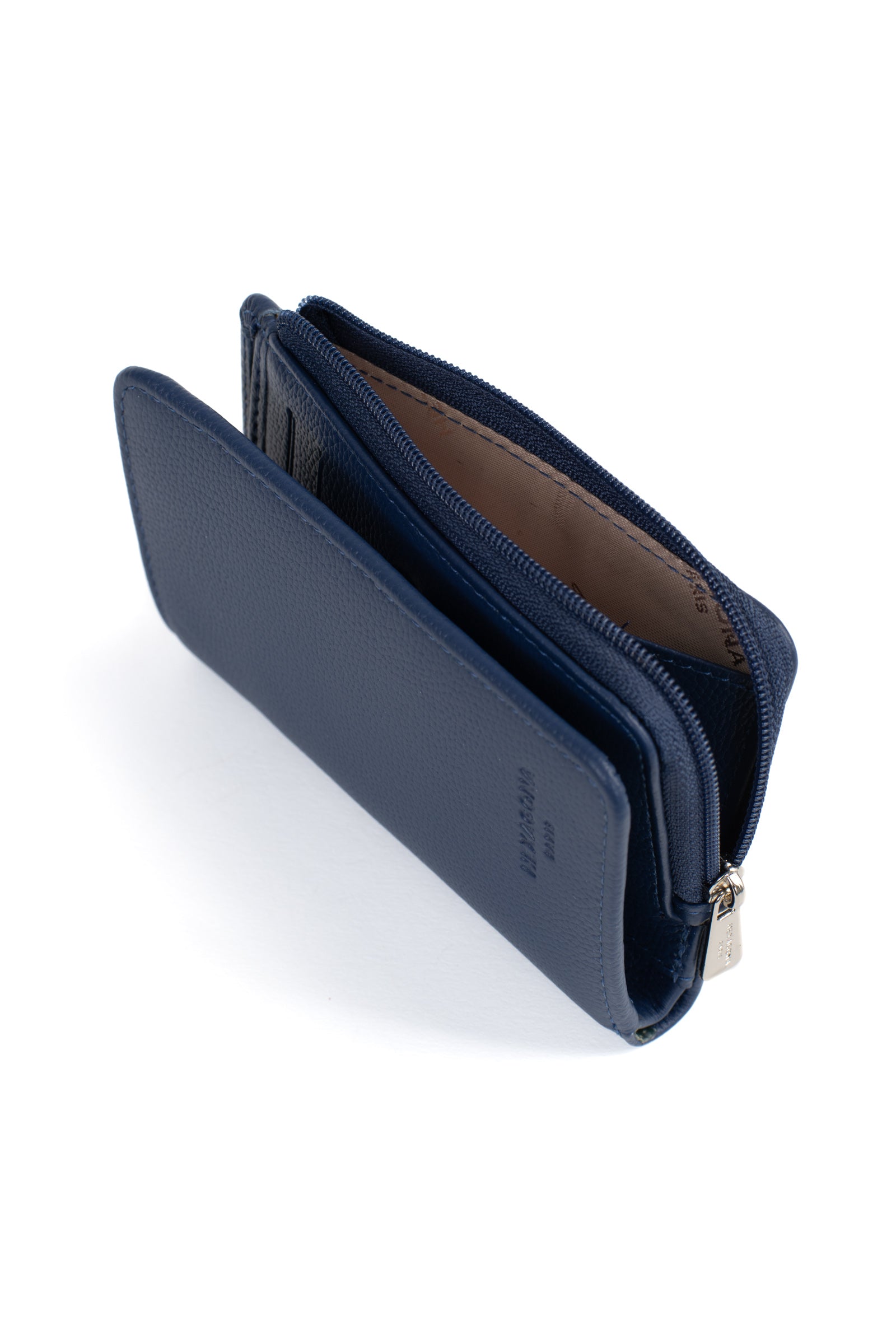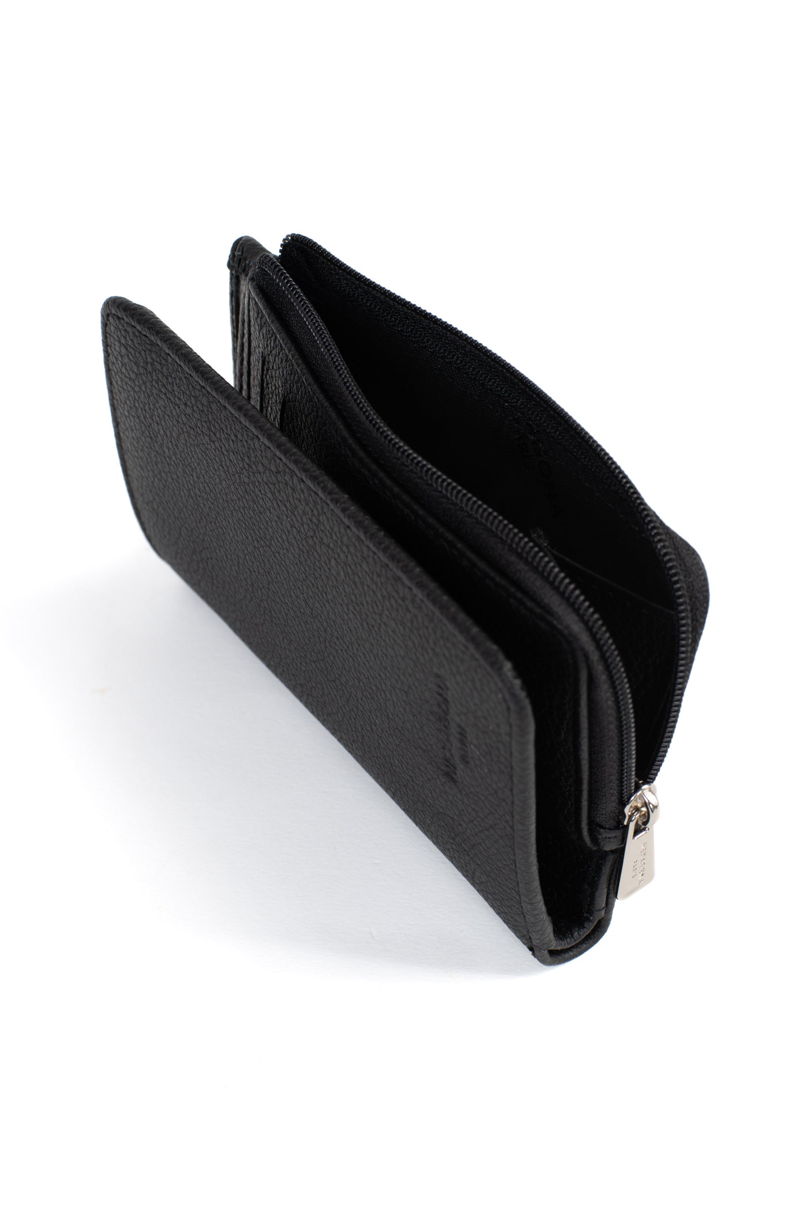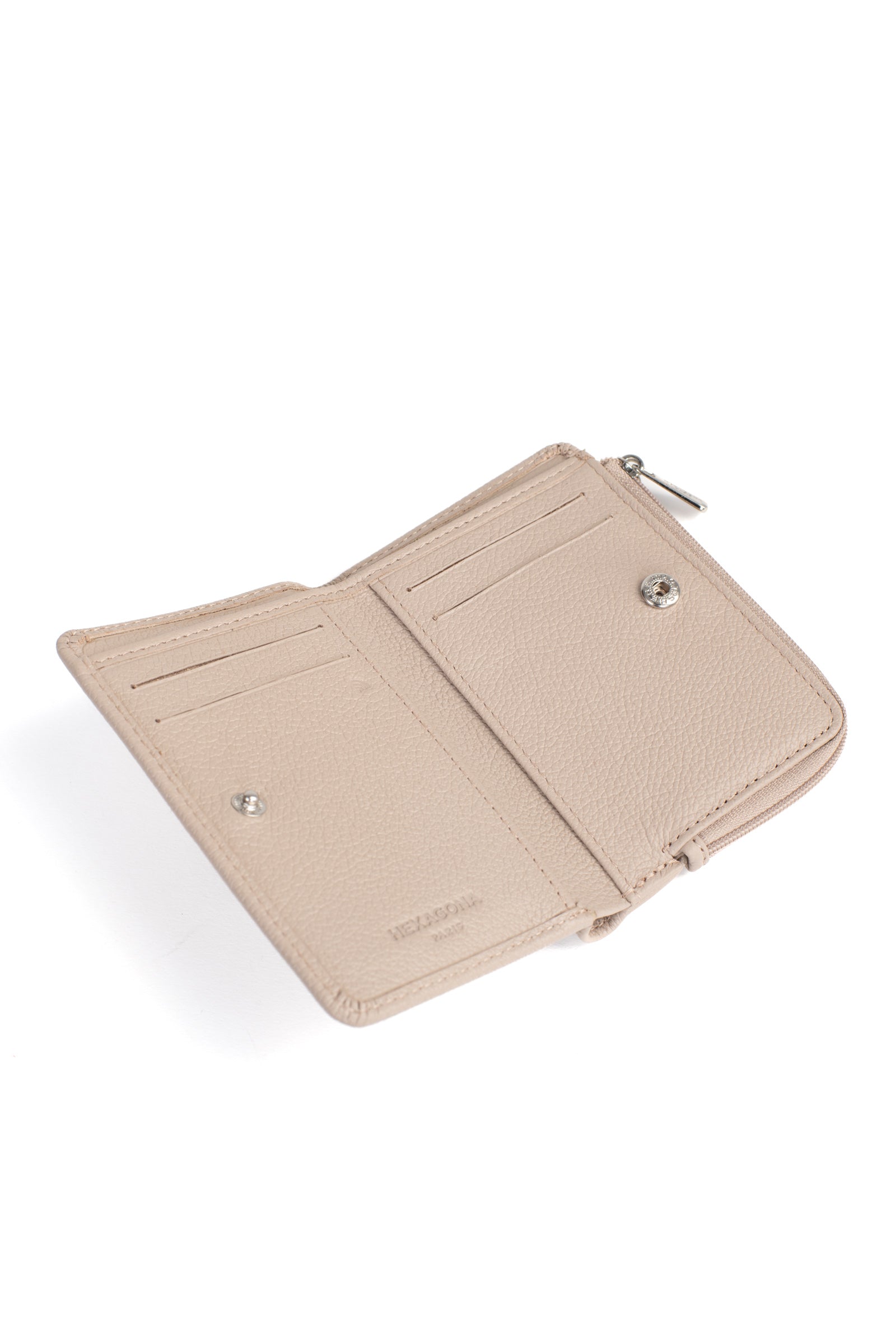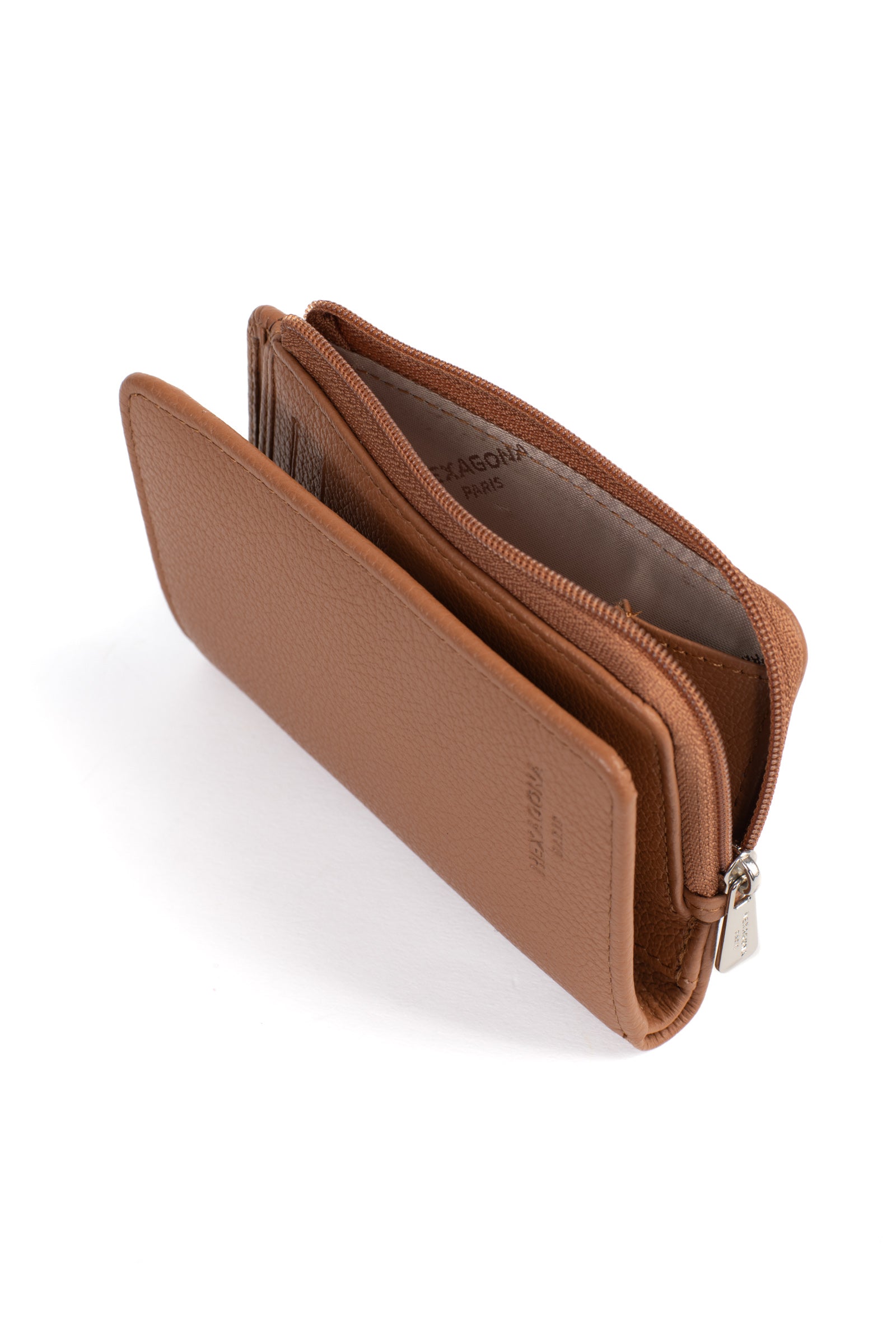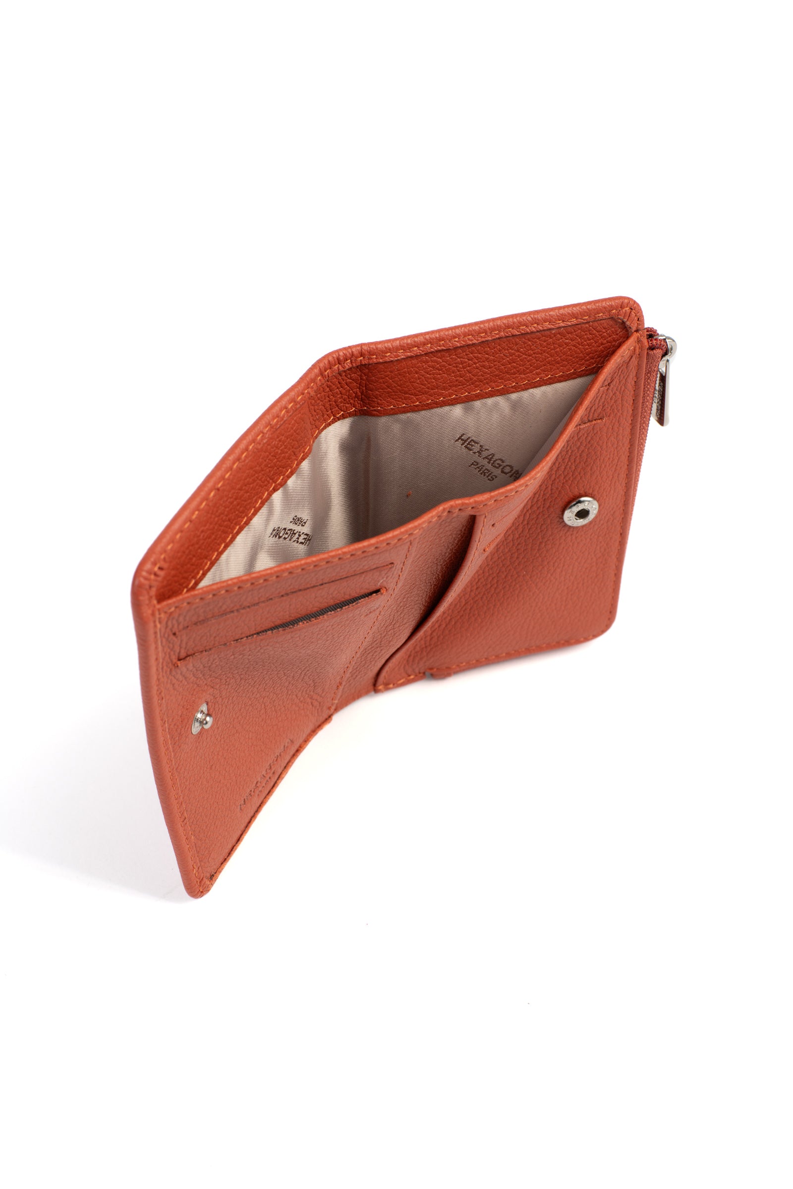 - Intérieur : 1 volet. 1 porte-monnaie zippé. 3 poches plates. 4 emplacements carte. 1 poche billets.
