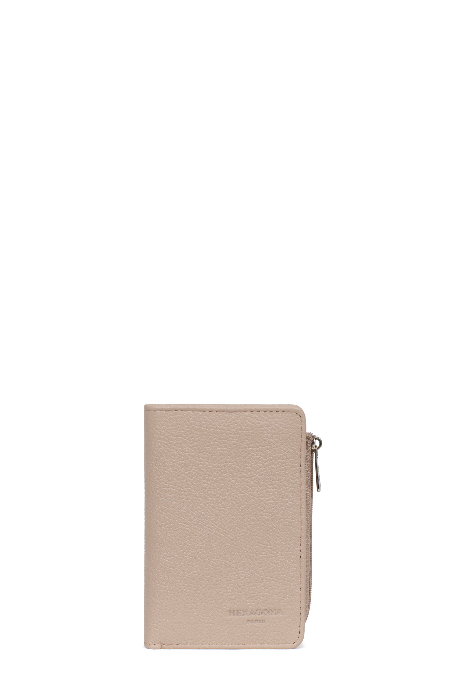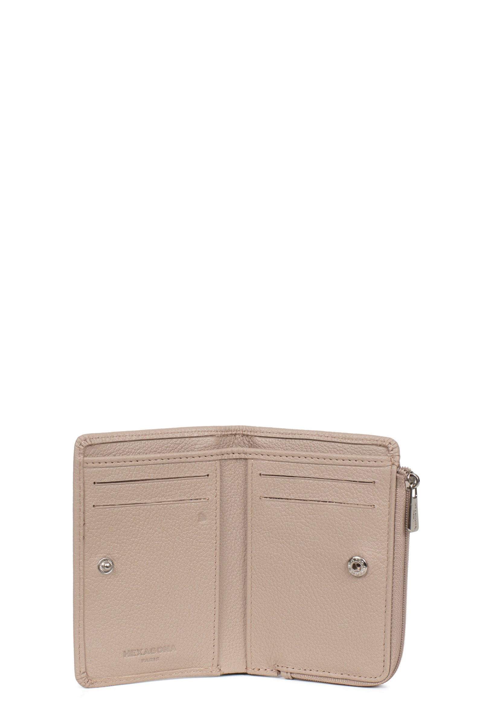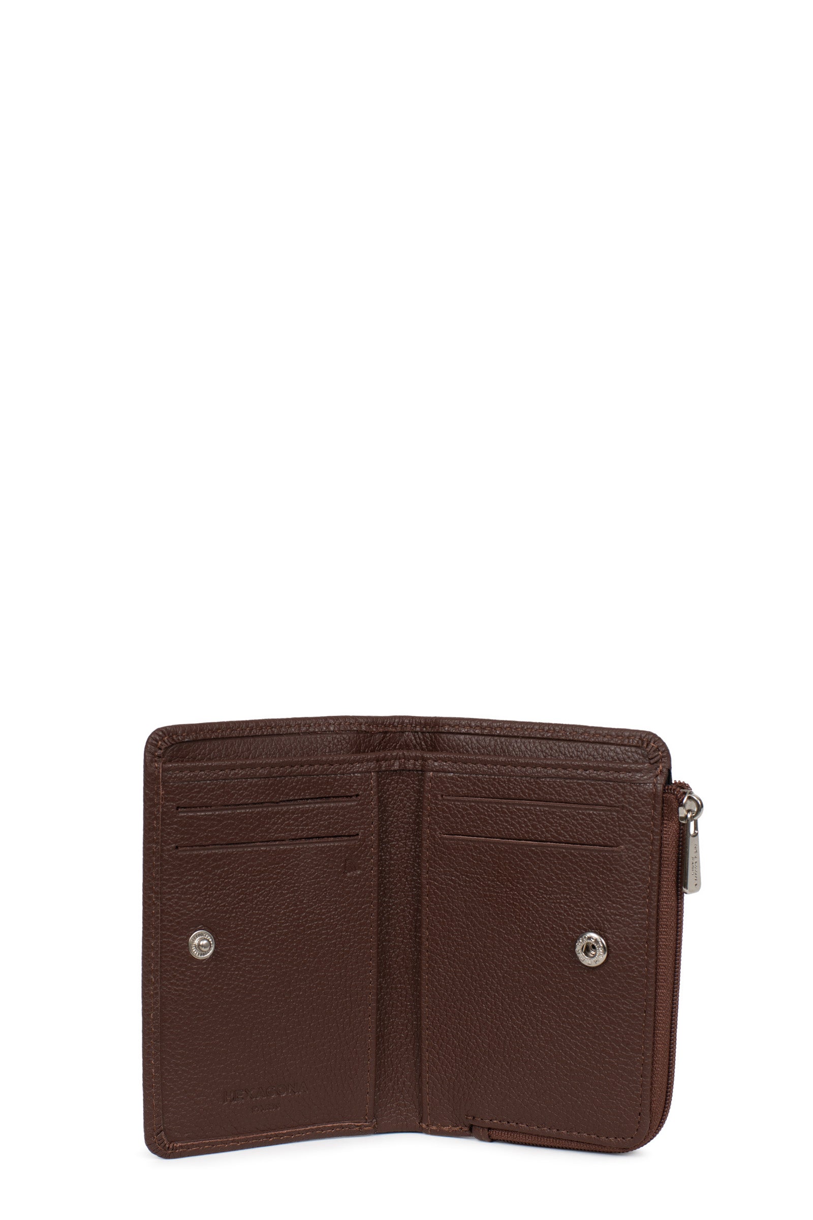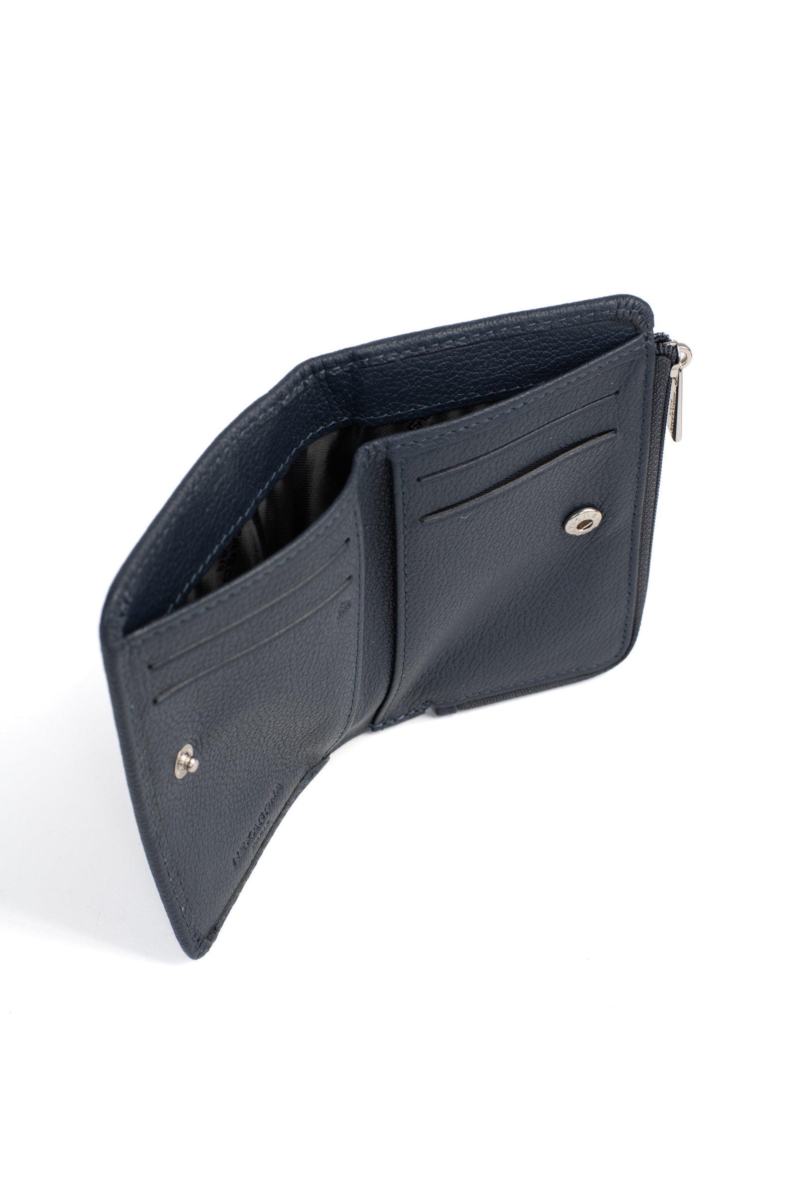 - Intérieur : 1 volet. 1 porte-monnaie zippé. 3 poches plates. 4 emplacements carte. 1 poche billets.
