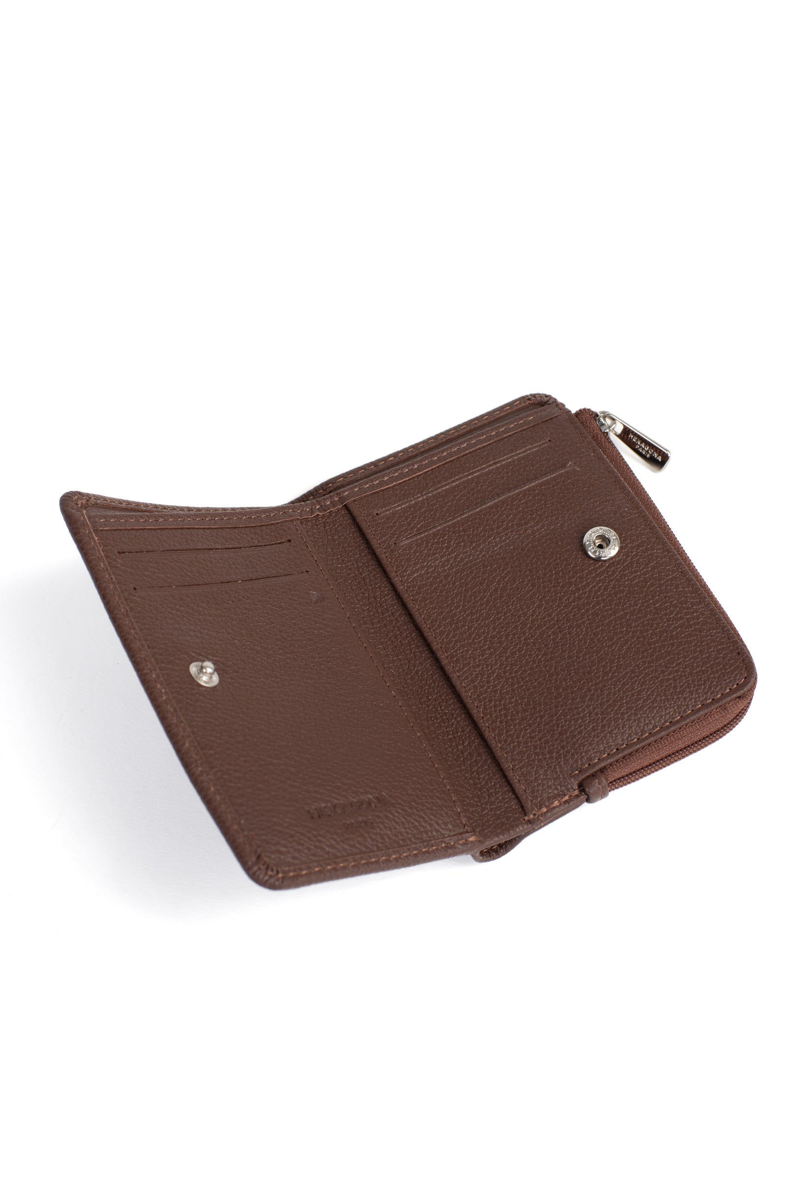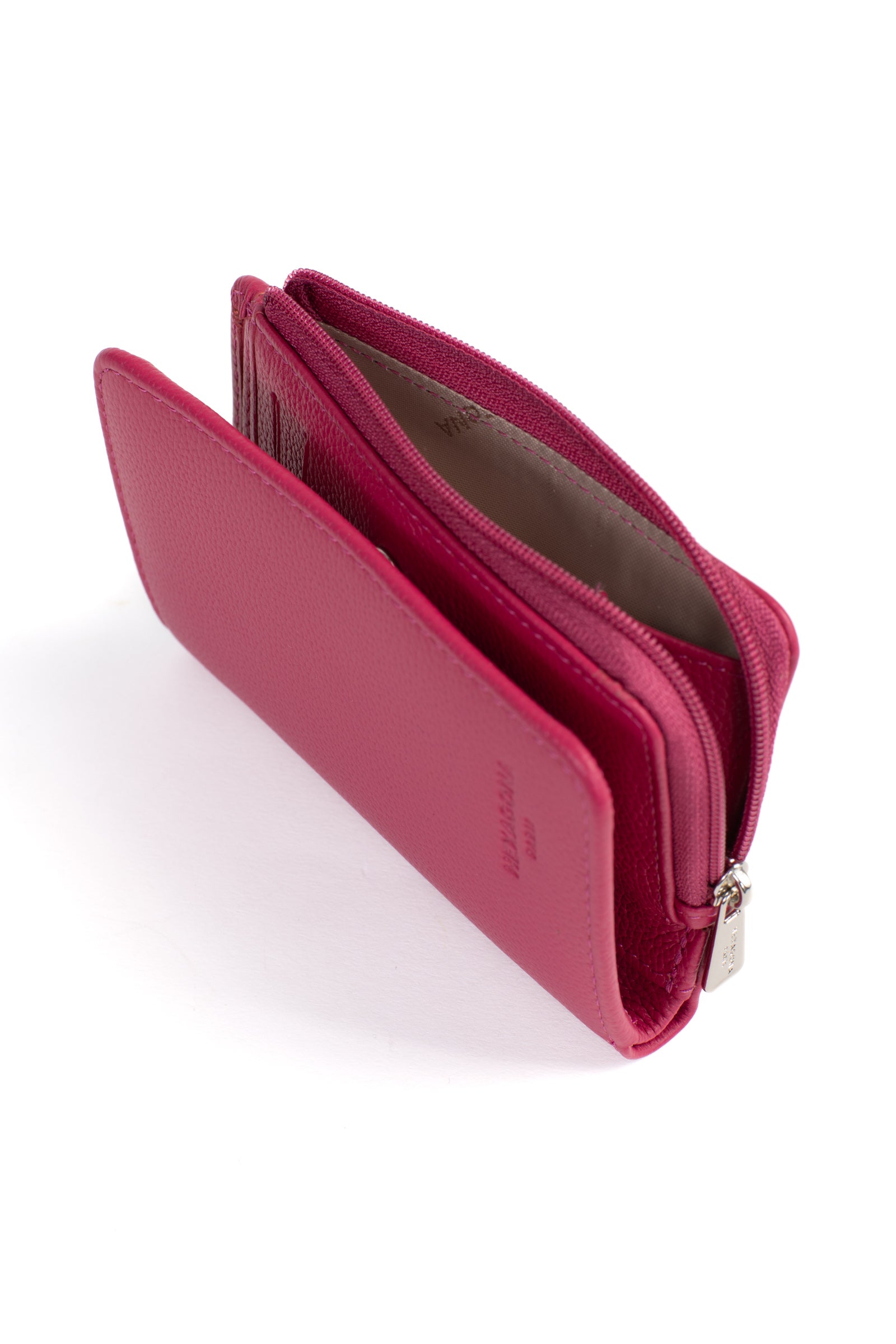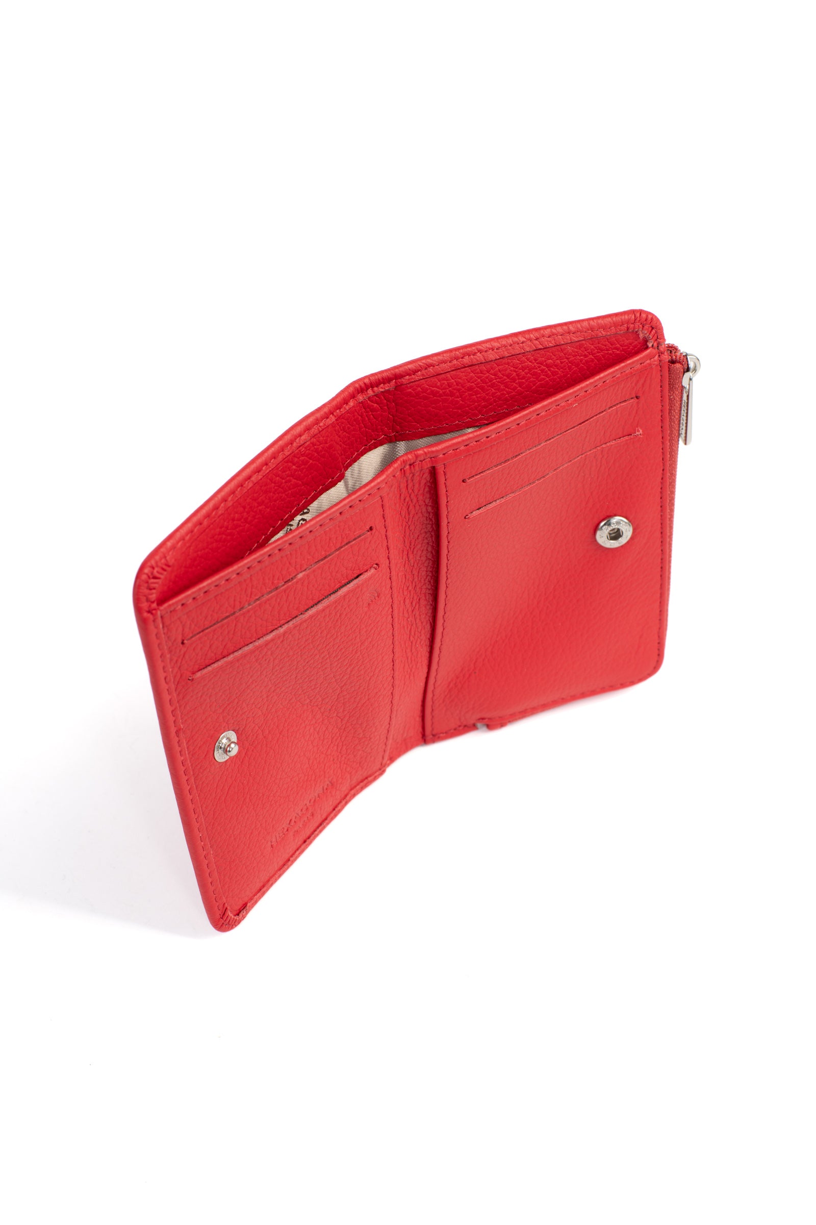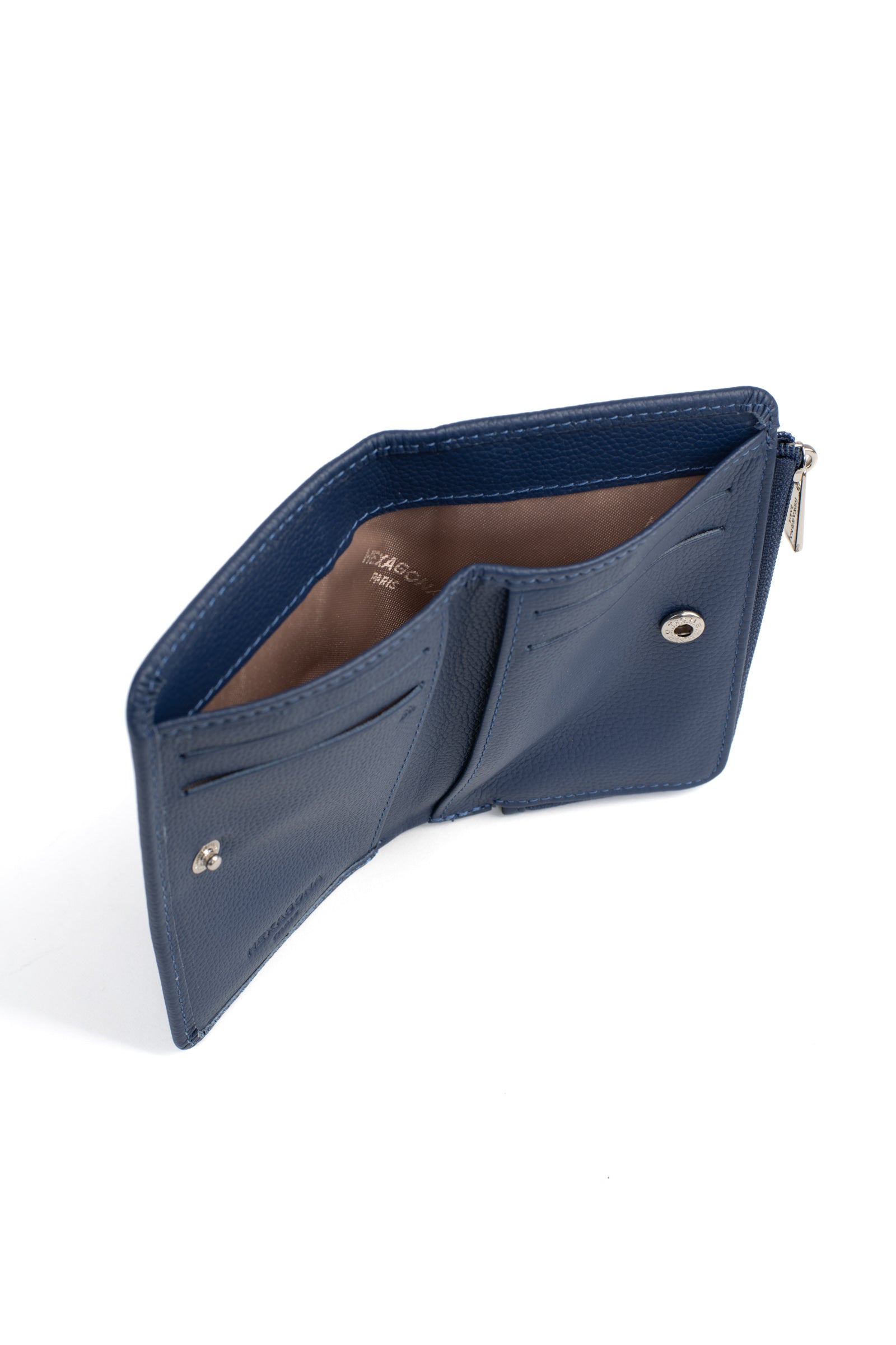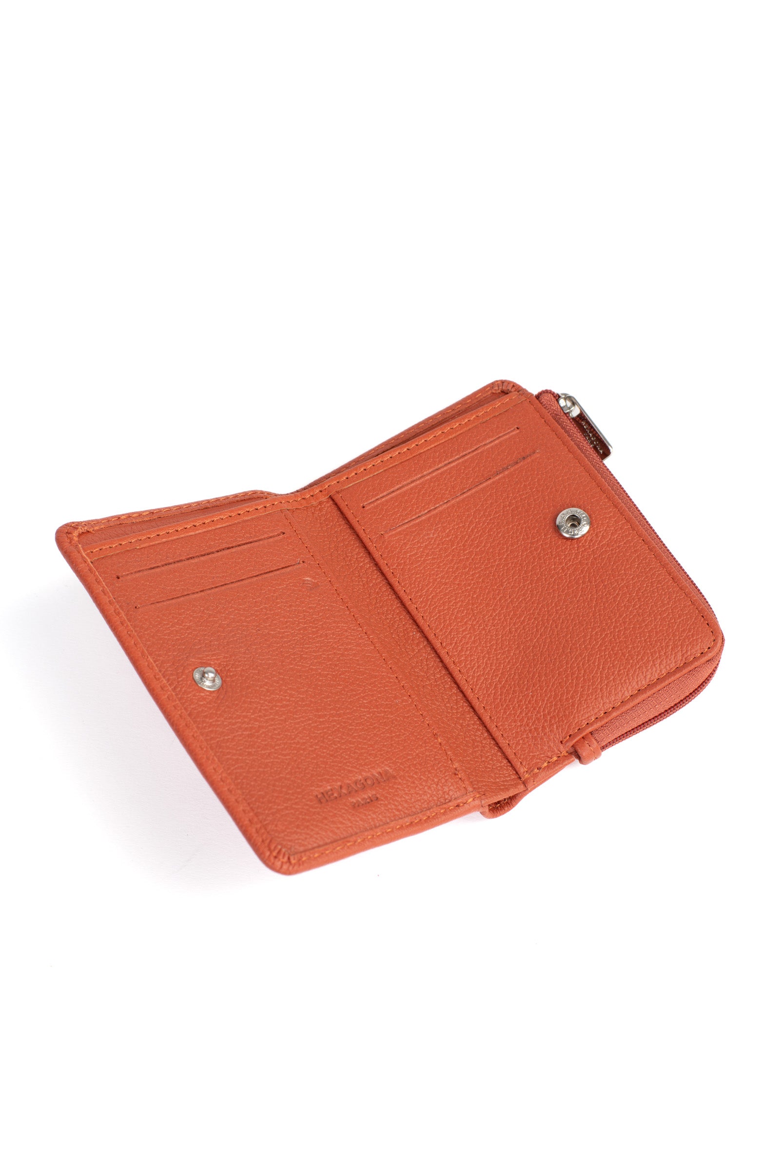 - Intérieur : 1 volet. 1 porte-monnaie zippé. 3 poches plates. 4 emplacements carte. 1 poche billets.