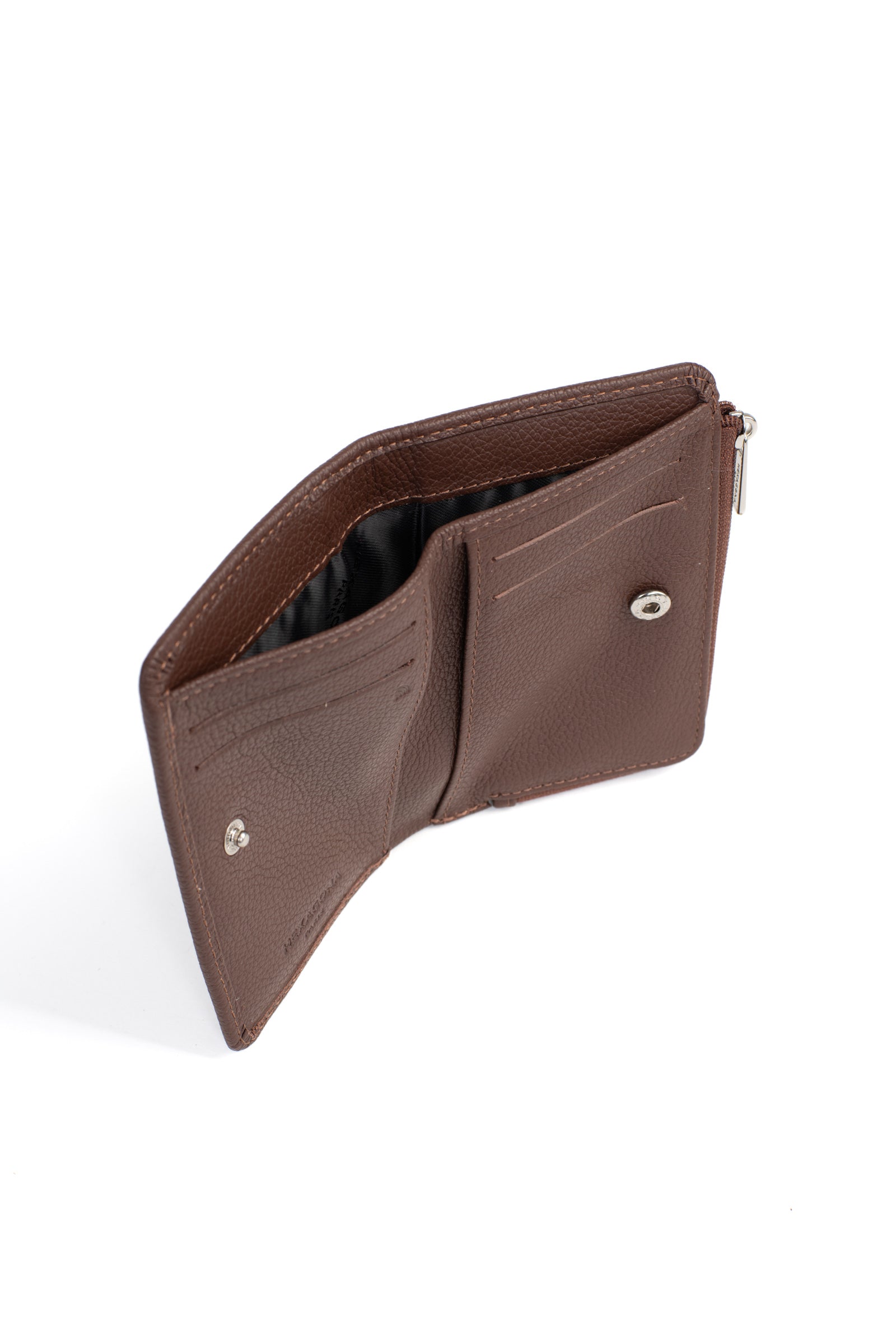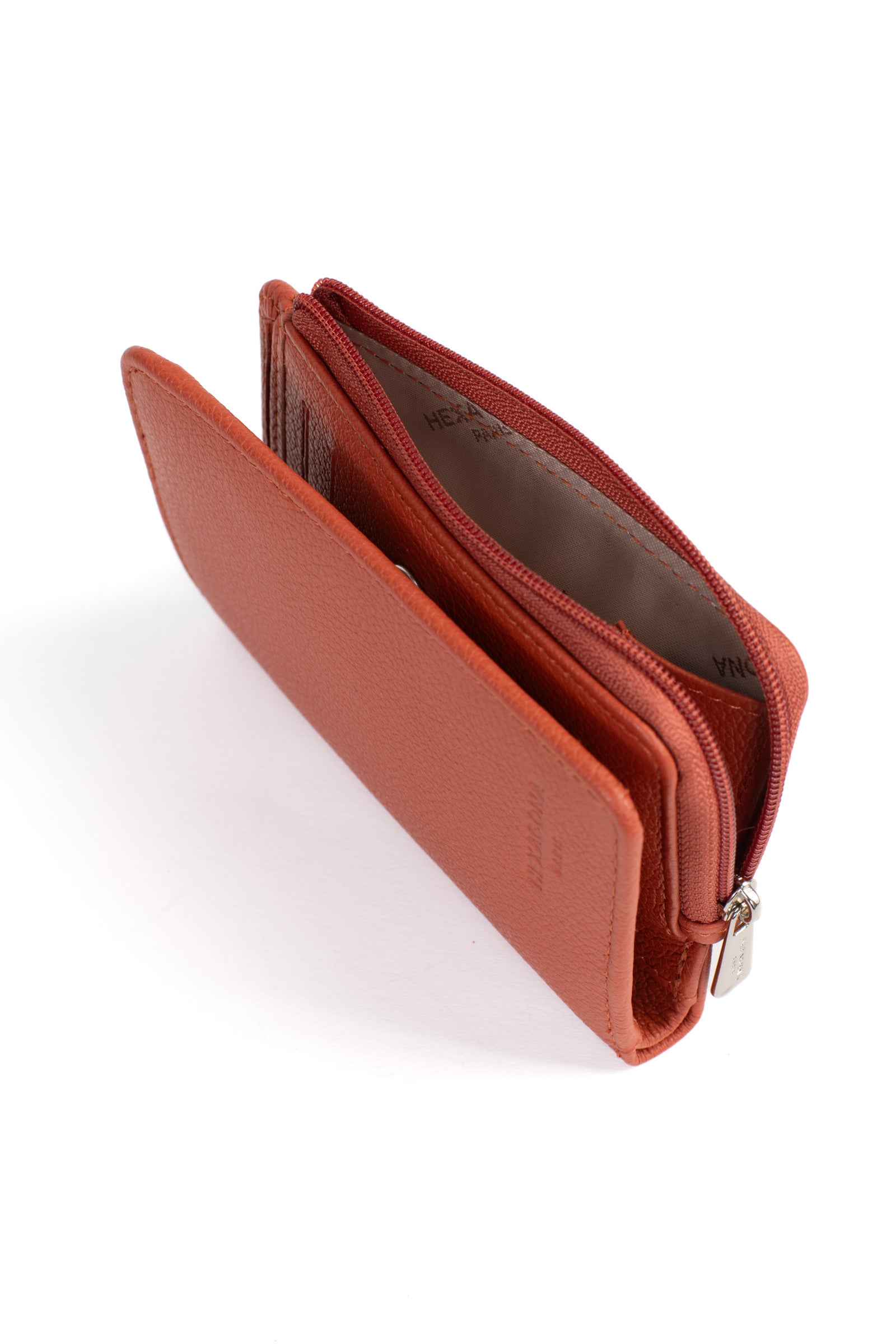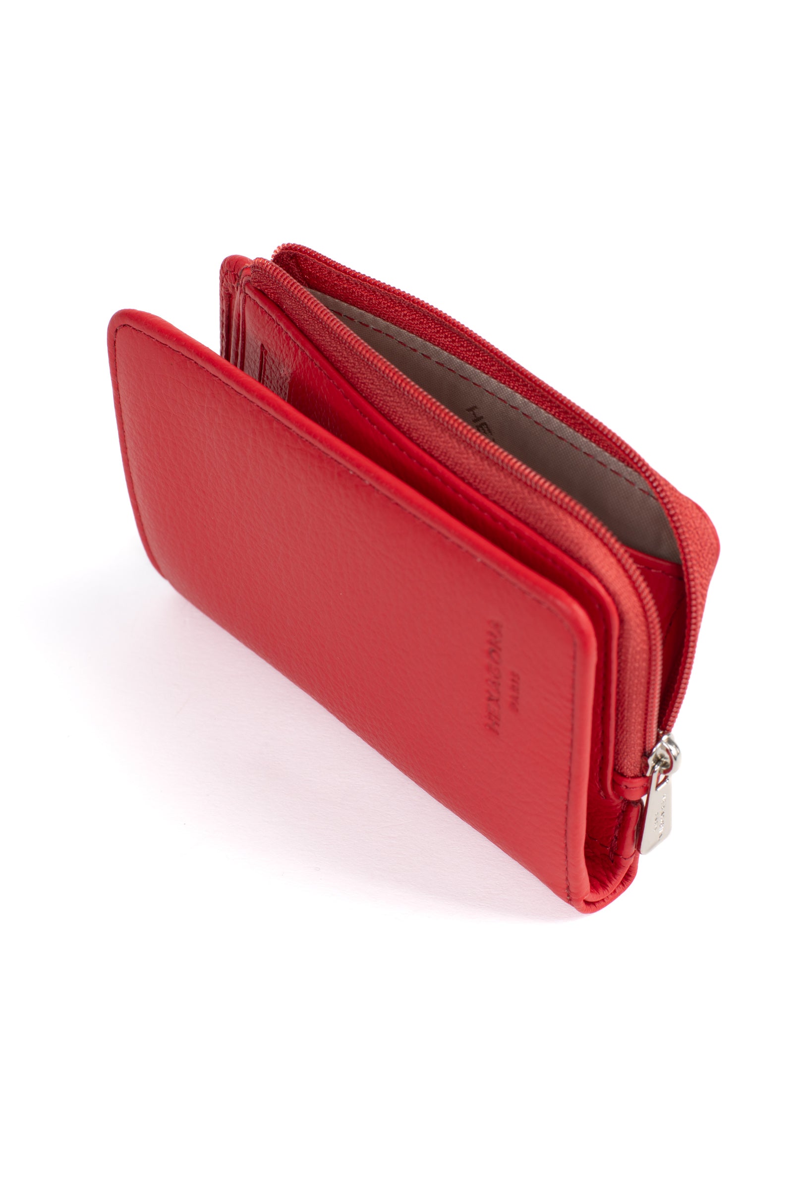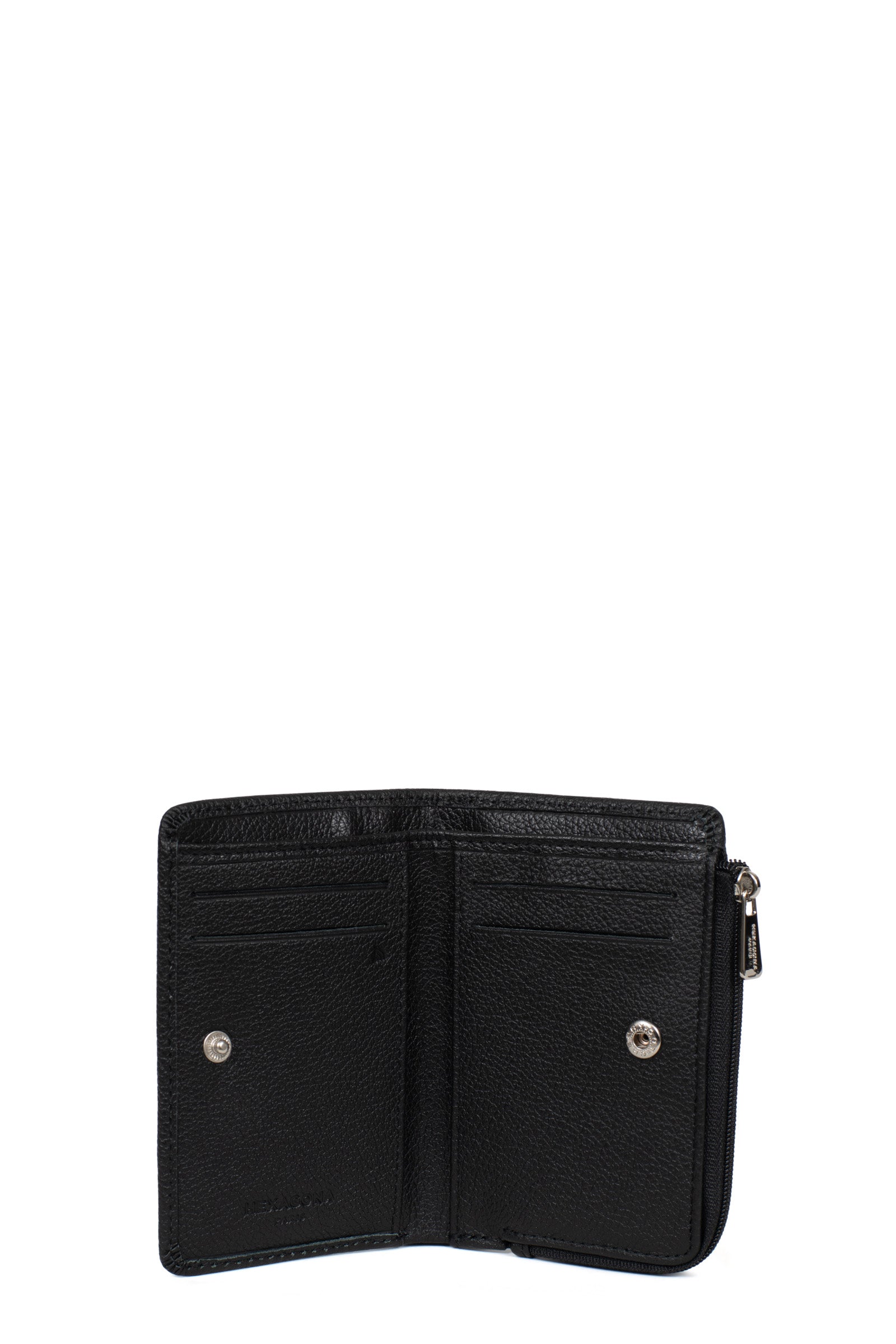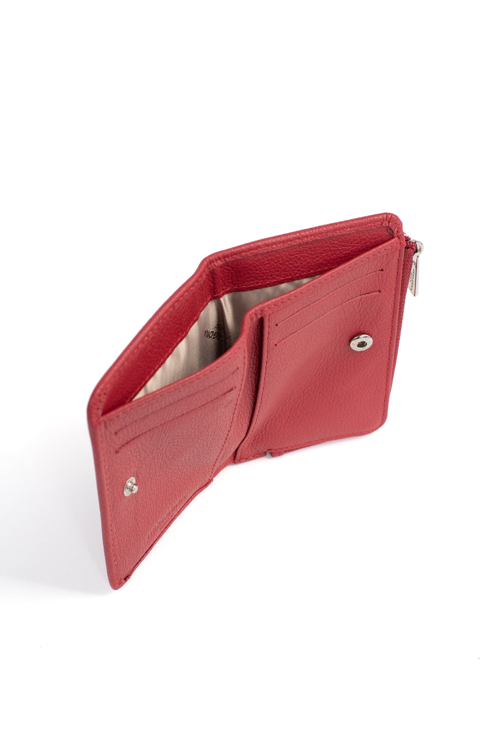 - Intérieur : 1 volet. 1 porte-monnaie zippé. 3 poches plates. 4 emplacements carte. 1 poche billets.