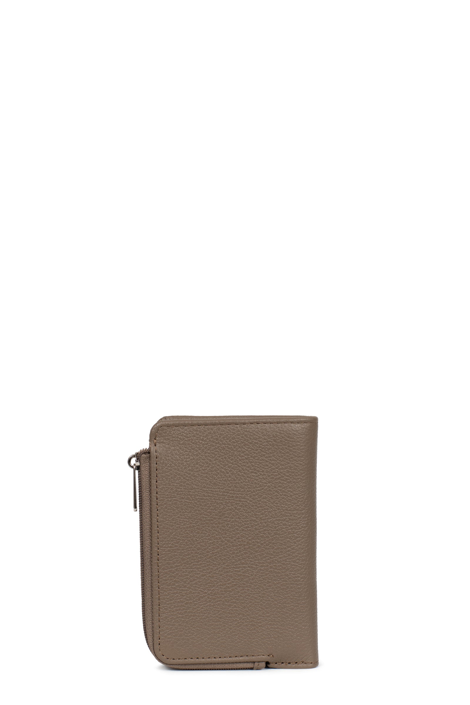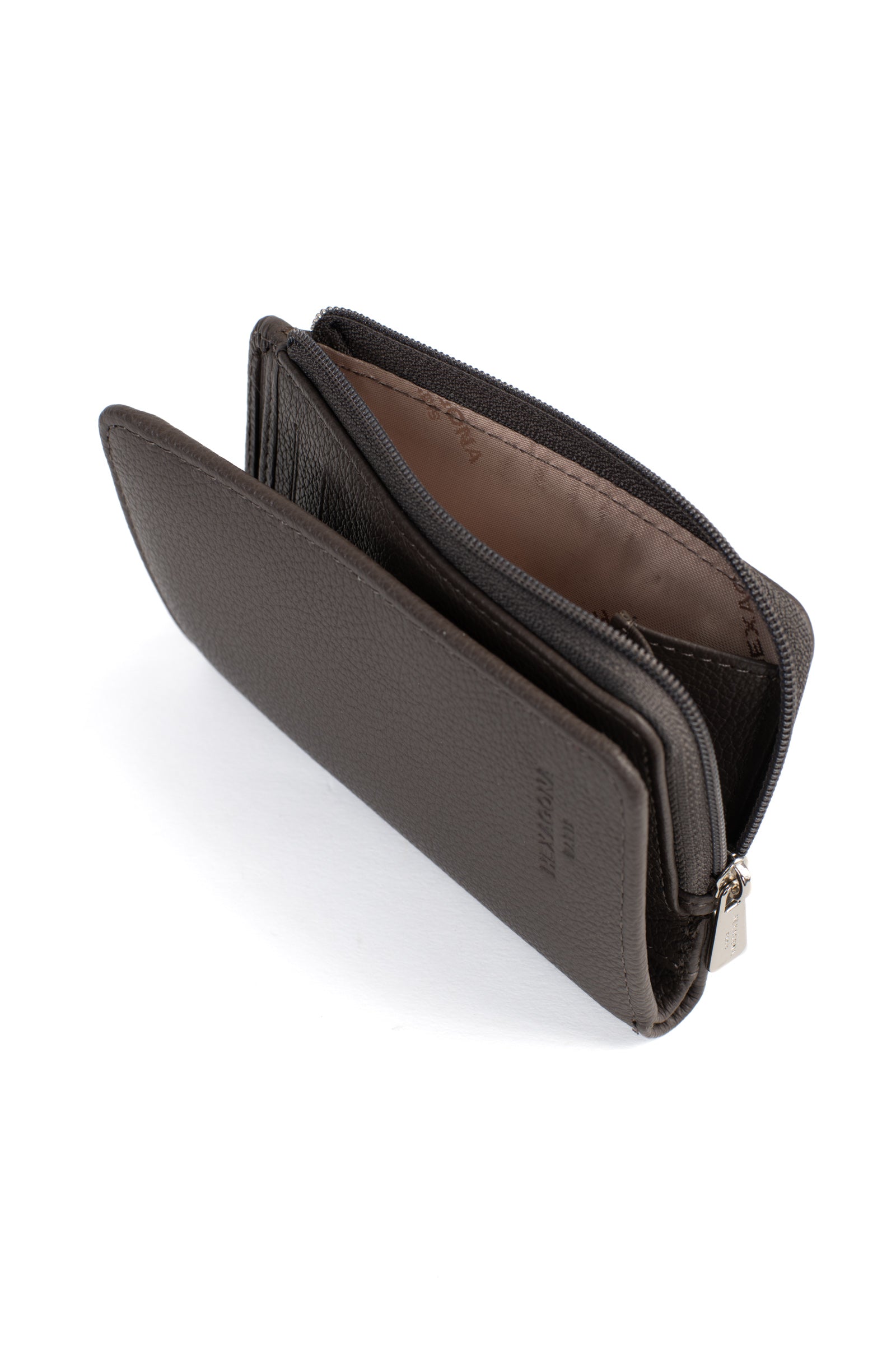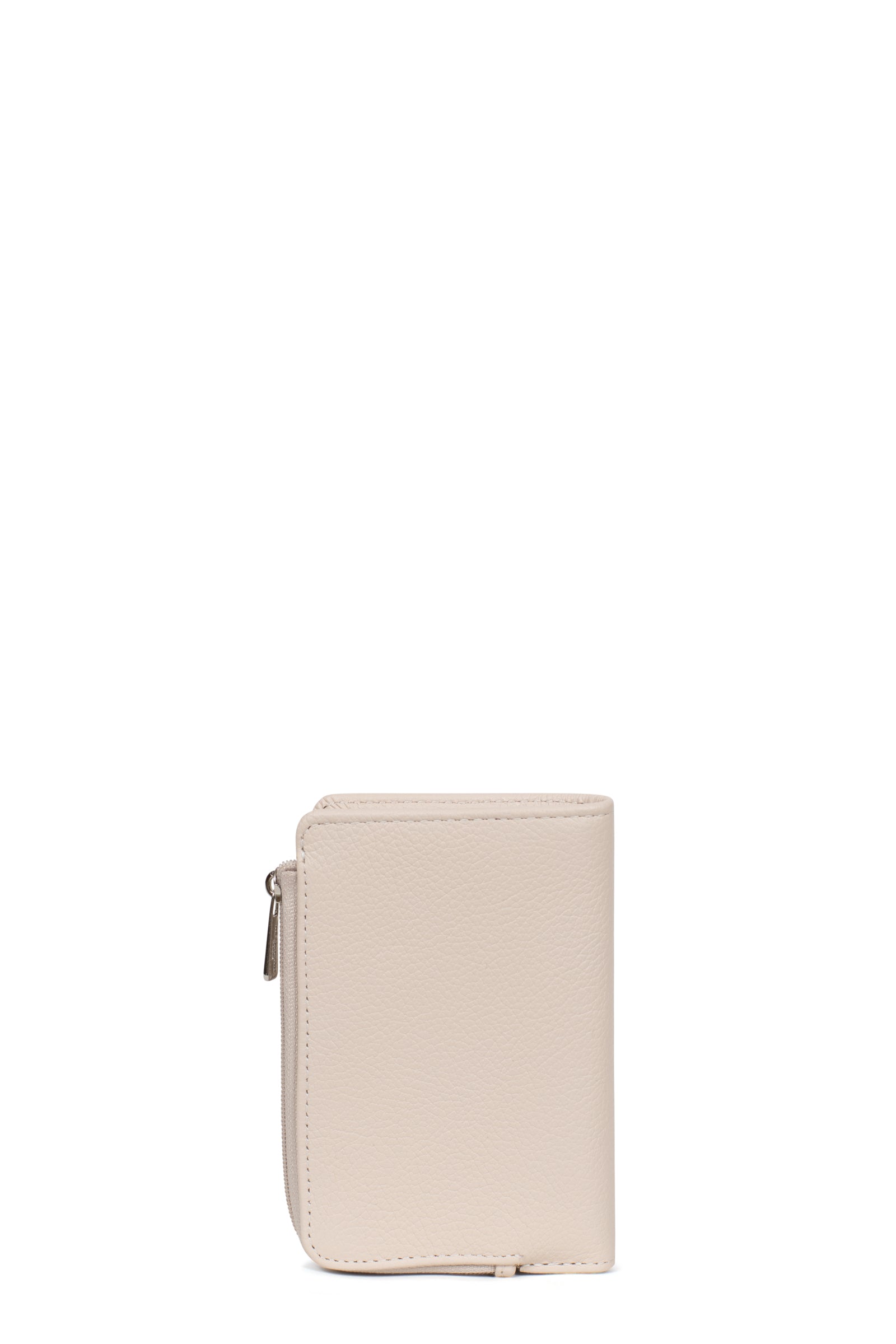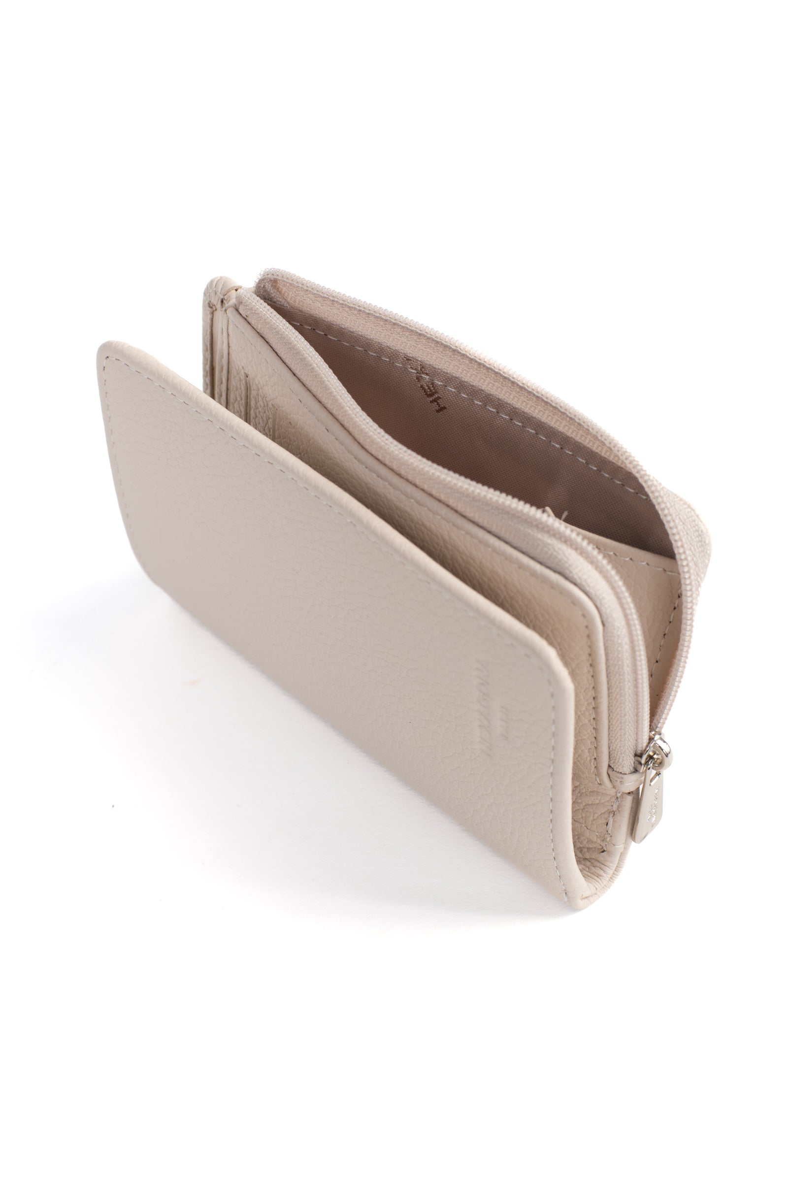 - Intérieur : 1 volet. 1 porte-monnaie zippé. 3 poches plates. 4 emplacements carte. 1 poche billets.
