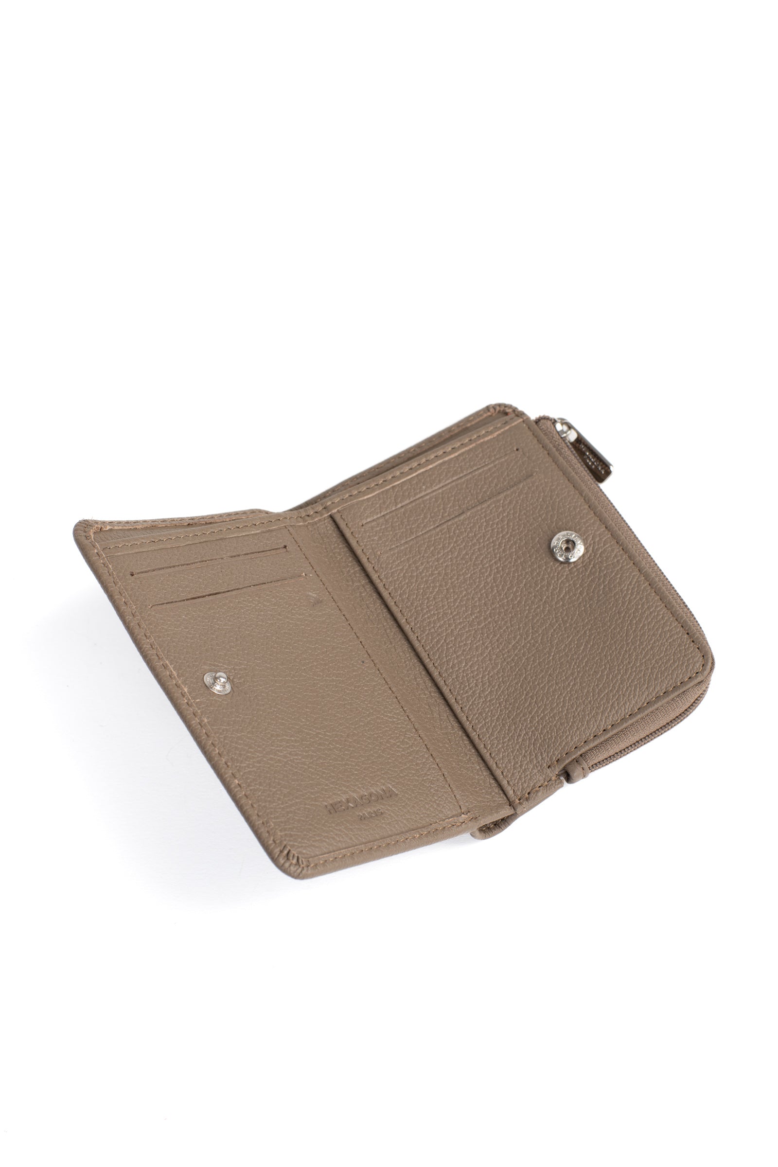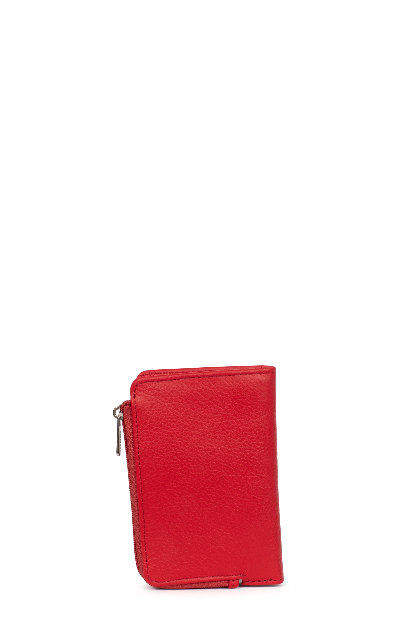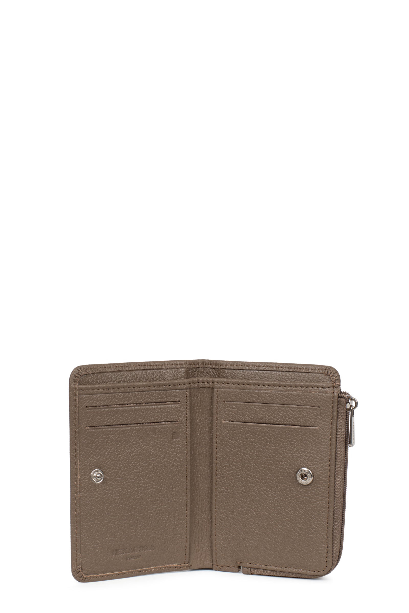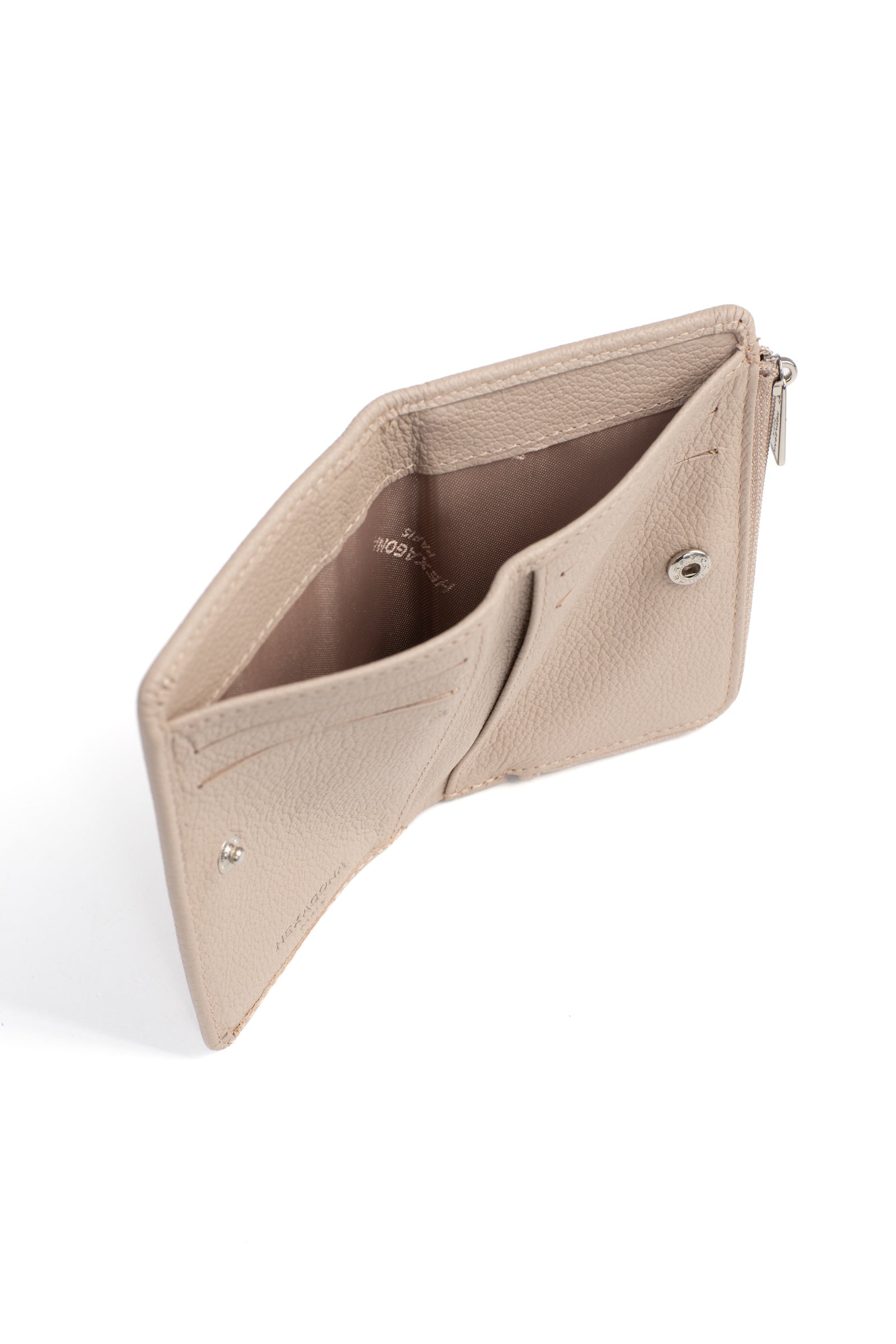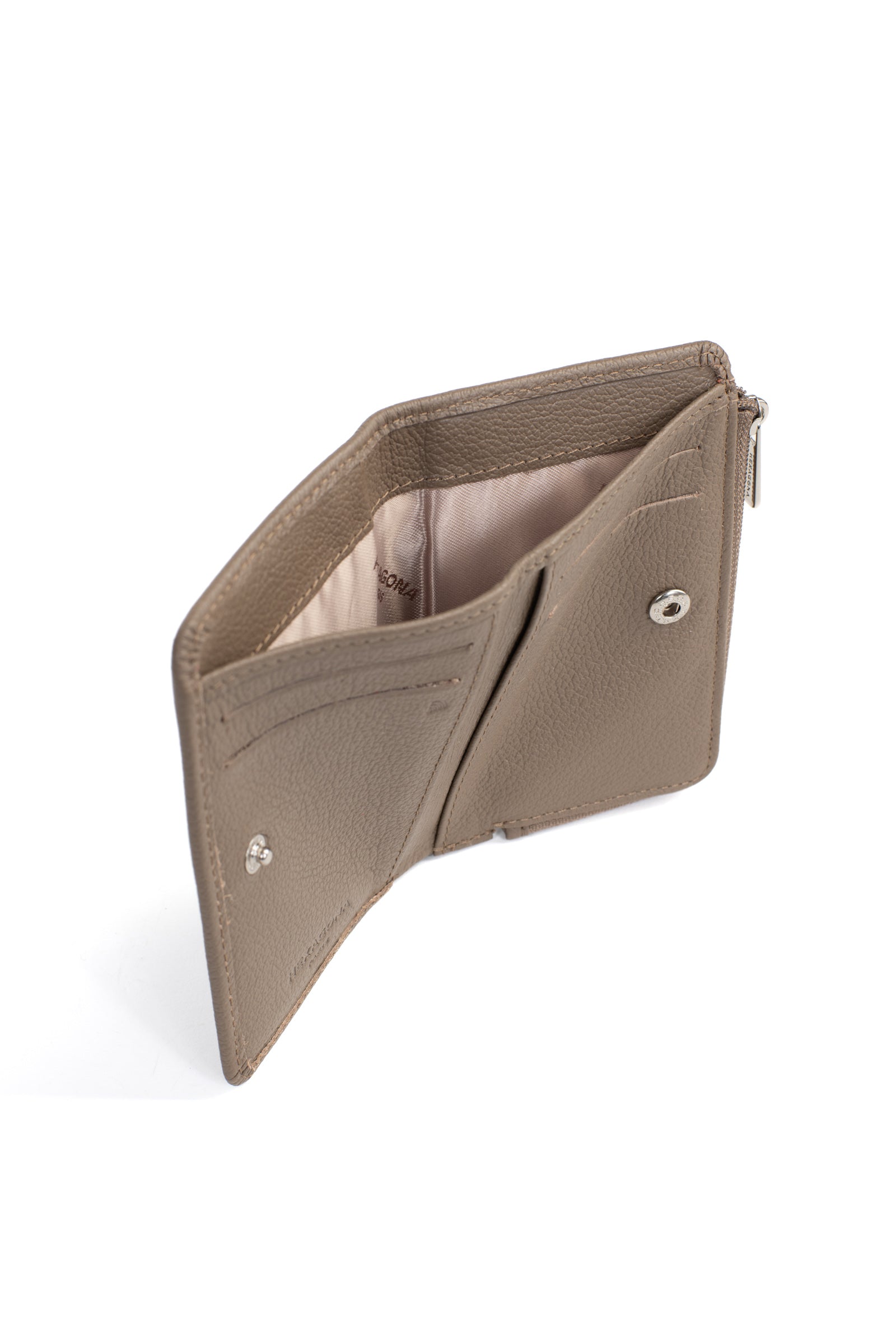 - Intérieur : 1 volet. 1 porte-monnaie zippé. 3 poches plates. 4 emplacements carte. 1 poche billets.