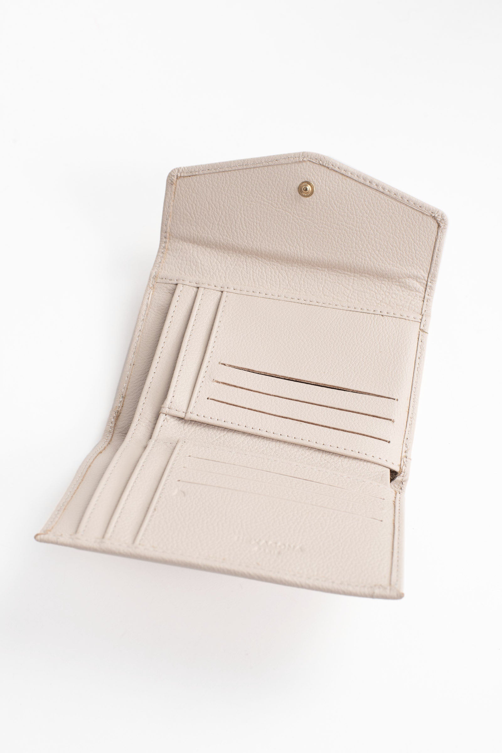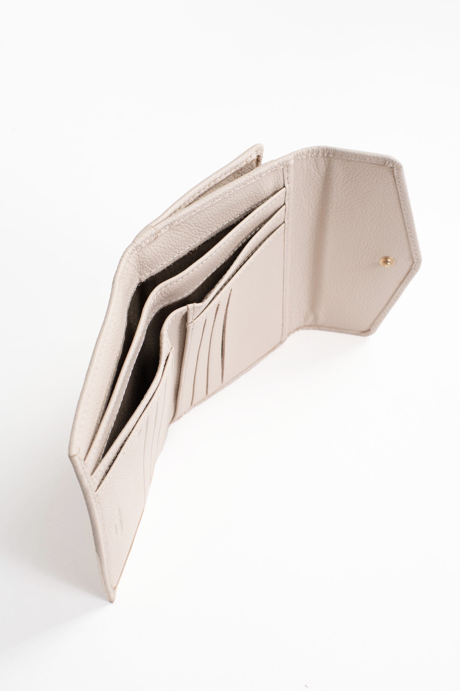 • Intérieur : 1 volet. 1 porte-monnaie zippé. 4 poches plates. 6 emplacements carte. 2 poches billets.