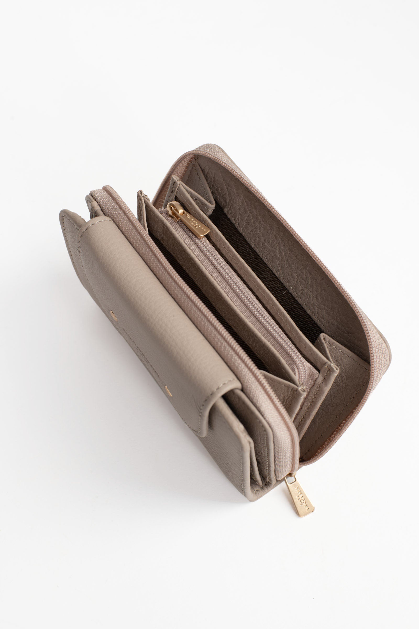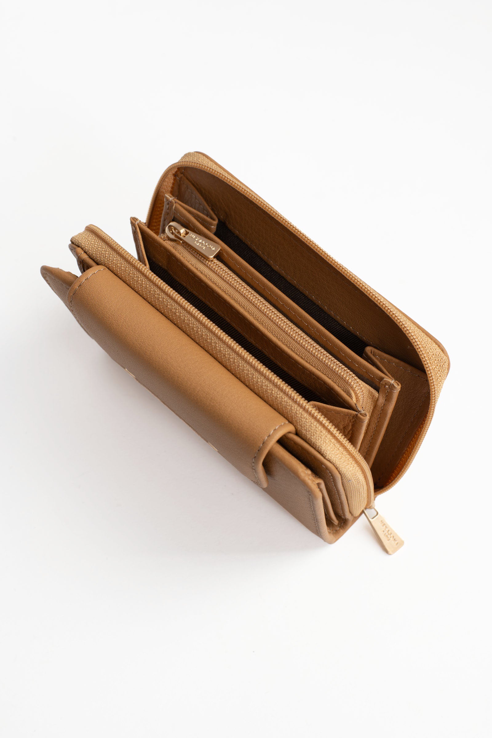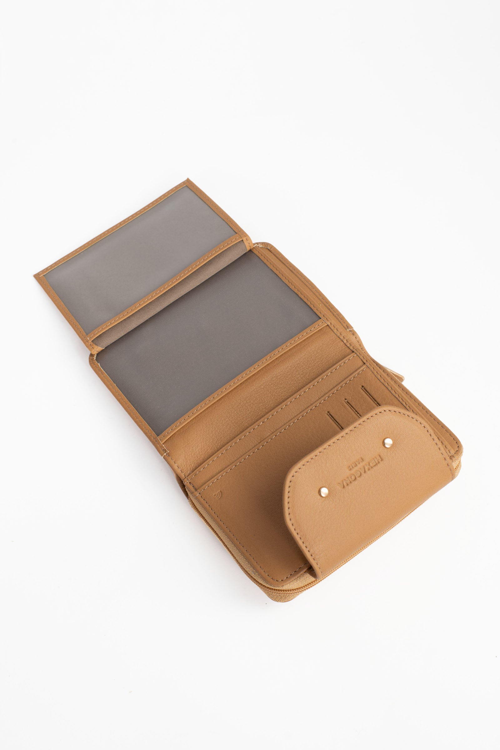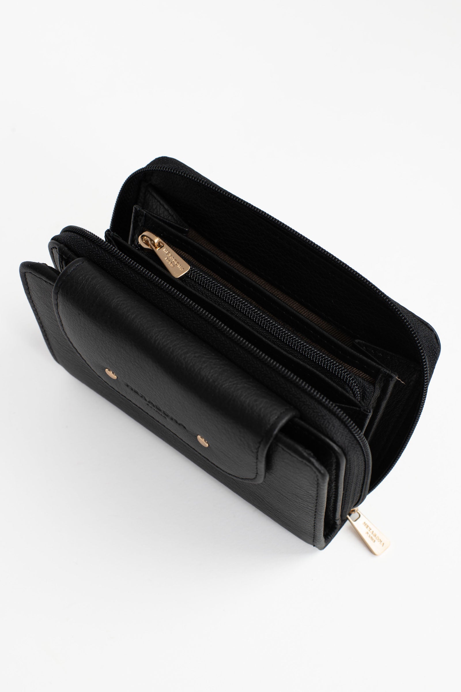- Intérieur : 2 volets. 1 compartiment principal. 1 porte-monnaie zippé. 6 poches plates (dont 2 à vue transparente). 6 emplacements carte. 1 poche billets.
