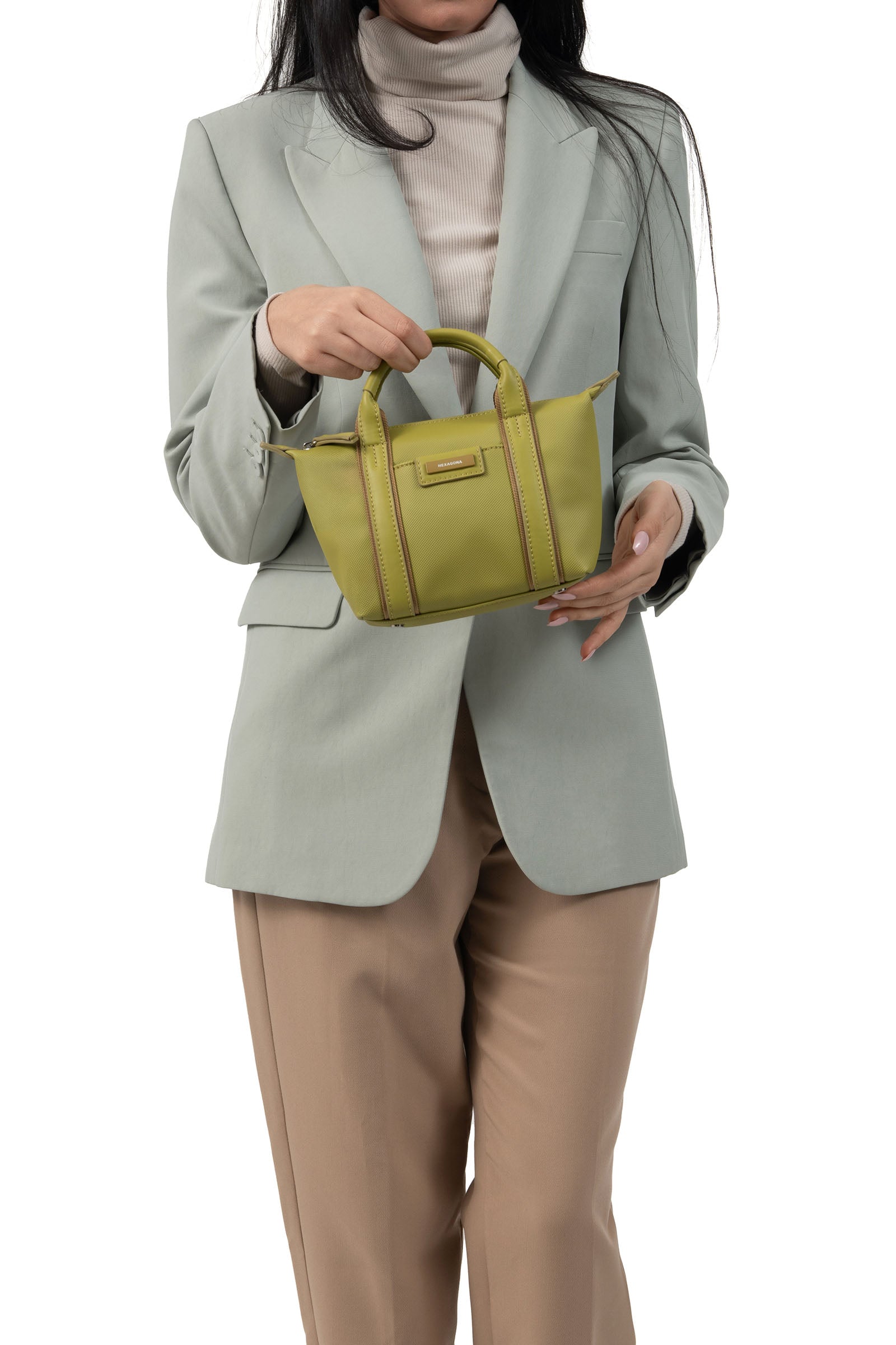 Le sac cabas porté main - Mini de la marque Hexagona se distingue par sa forme arrondie et compacte, alliant praticité et élégance. Sa conception permet un port à la main grâce à ses poignées courtes tout en offrant une option de port épaule avec sa bandoulière amovible.