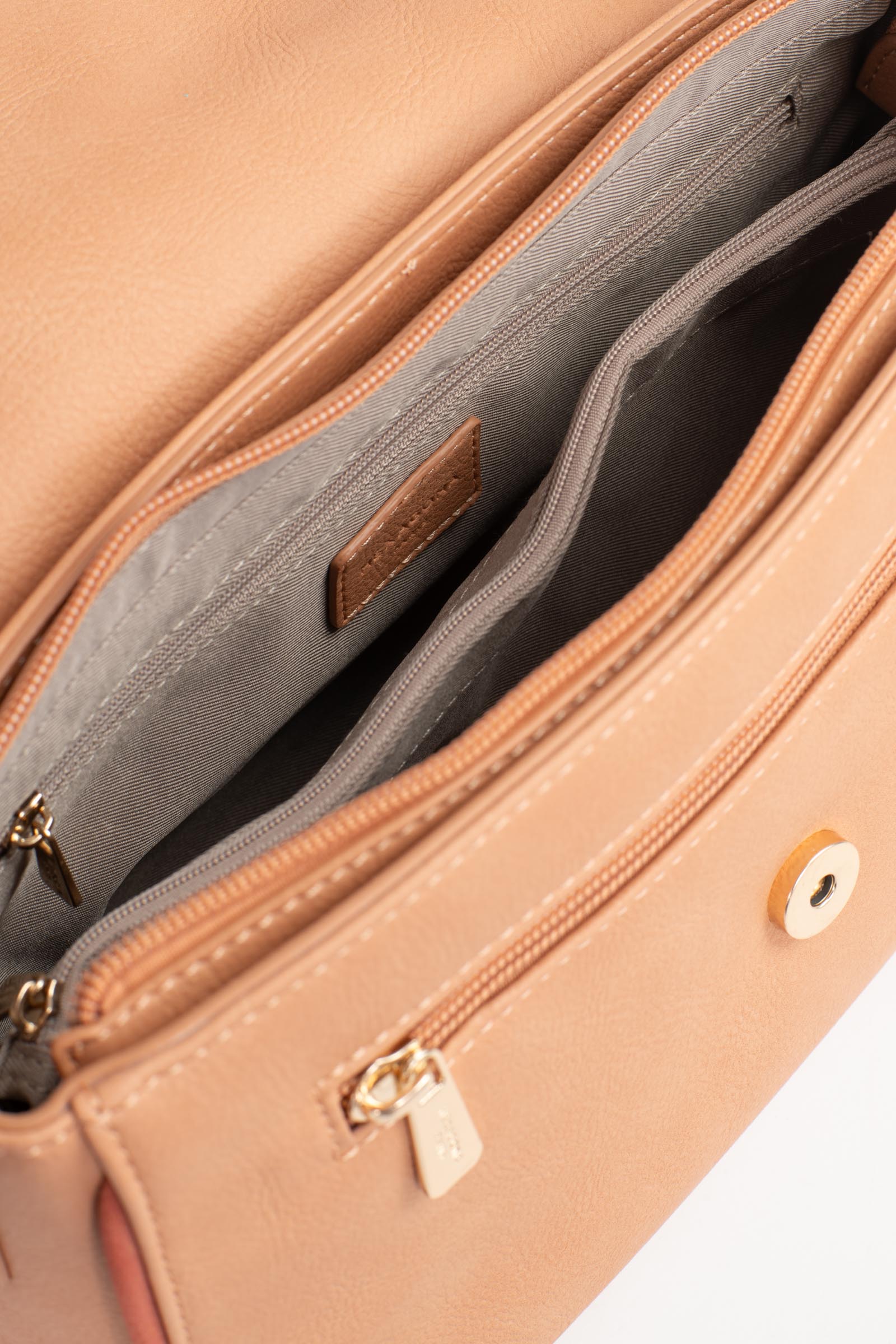 1 fermeture à rabat aimanté. 1 fermeture zippée.