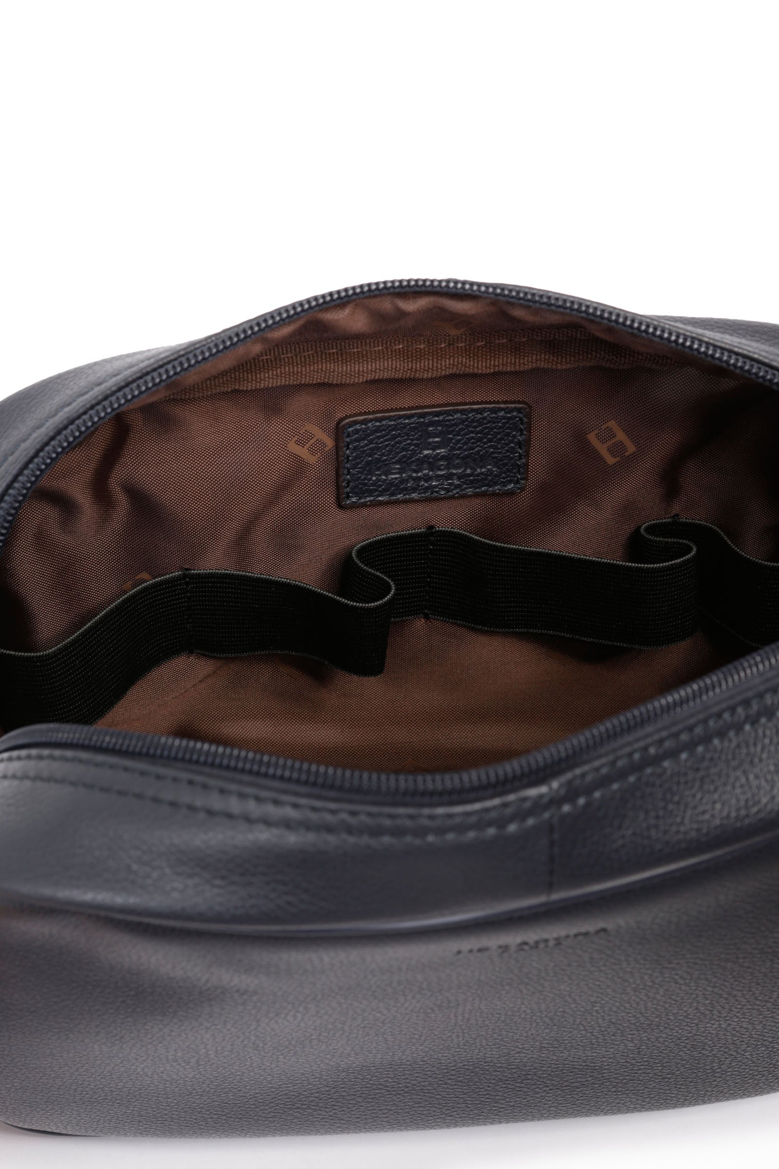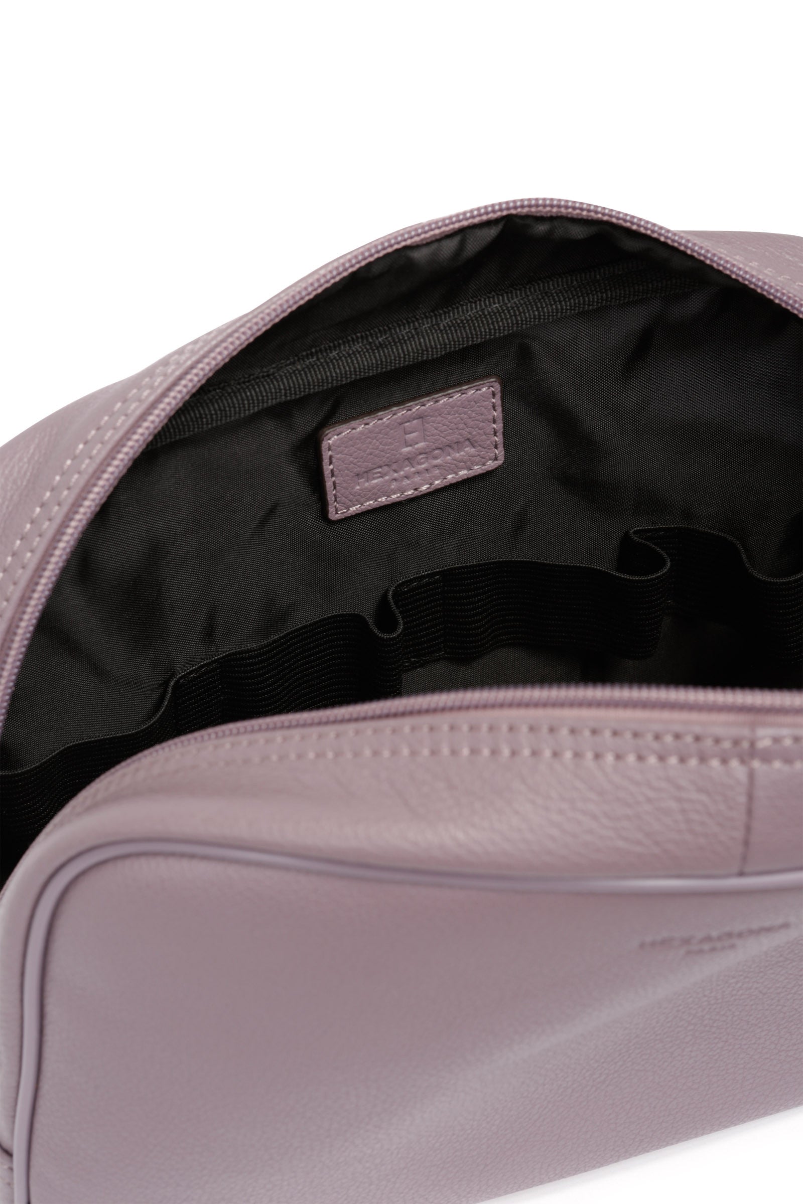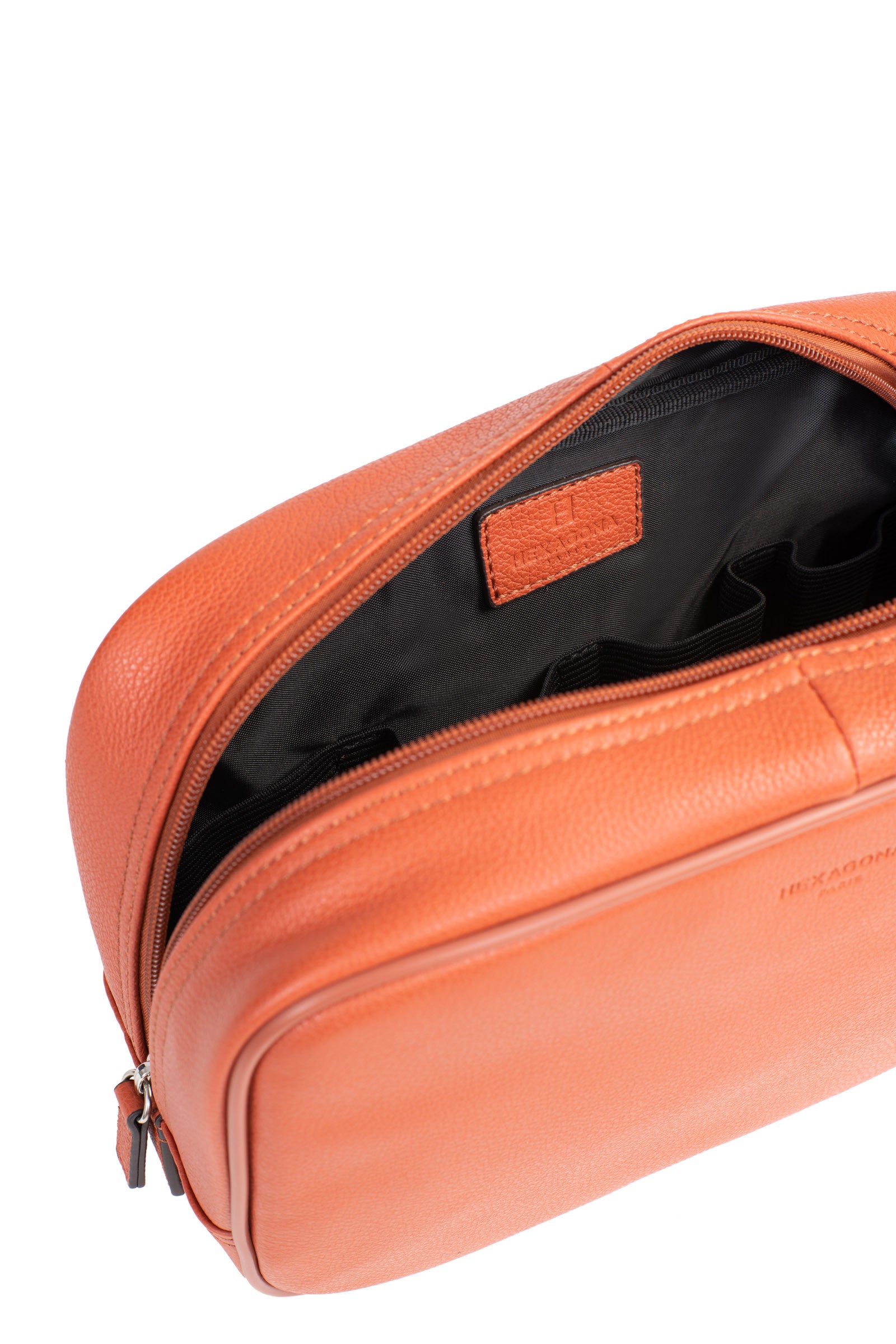 Intérieur : 1 compartiment principal avec 2 poches plates. 4 élastiques porte-flacon.